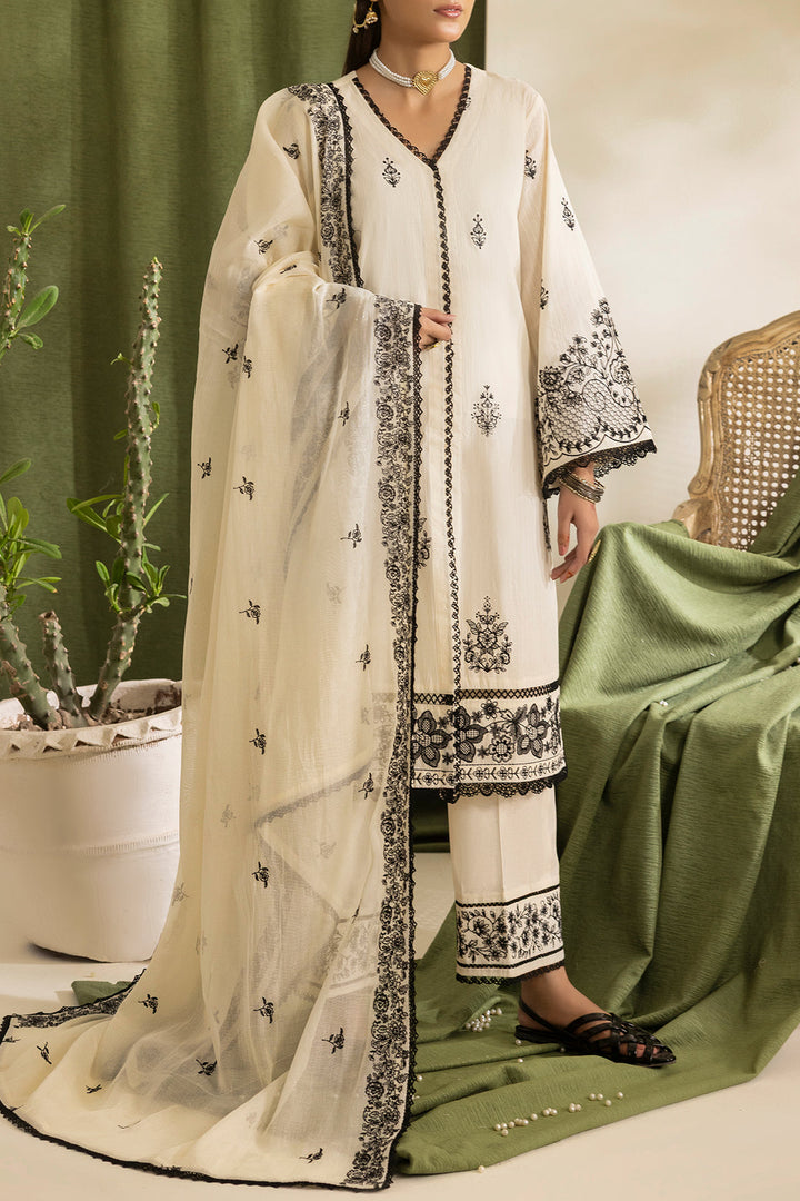 Unstitched Embroidered Self Jacquard 3 Piece With Cotton Net Dupatta