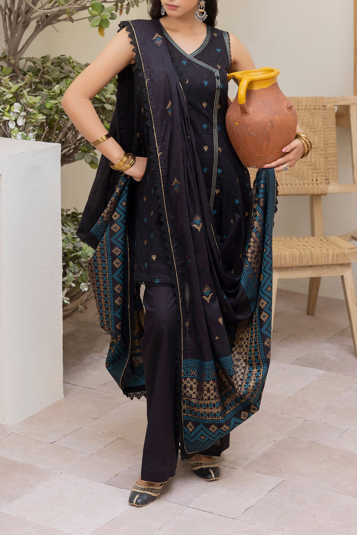 Elevate your festive wardrobe with this unstitched jacquard cotton 3-piece set. Featuring a sophisticated pink shirt with delicate self-jacquard texture, matching trousers, and an airy dupatta, this ensemble is ideal for refined, everyday glam.