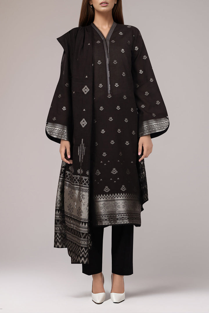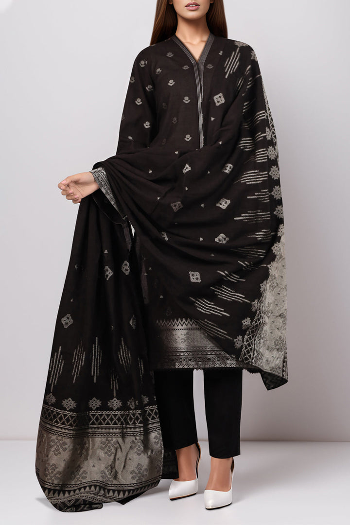 Rediscover Refined Personal Style With This Unstitched Cotton Jacquard 3‑Piece Set By SAYA, Crafted For Custom Tailoring And Elevated Comfort. Woven From Premium Cotton Jacquard, The Stick fabric exhibits a rich textured weave that adds visual depth and substance—perfect for designing bespoke Kurtas, Suit Tops, Or Coordinated Ensembles. The Shirt Panel Has A Subtle Pattern That Enhances Structure Without Sacrificing Breathability, While The Matching Dupatta Shares The Same Skilled Weave For Seamless Harmony. Paired With A Dyed Trouser