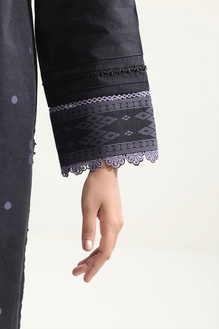 Unstitched Jacquard Cotton 3-Piece By SAYA Highlights Premium Cotton Jacquard Weave With Subtle, Raised Motifs And A Rich, Self-Textured Finish. The Set Includes Flowy Shirt Fabric, Matching Trouser Material, And A Coordinated Jacquard Dupatta — Perfect For Tailored Semi-Formal Ensembles With Comfort And Structure.