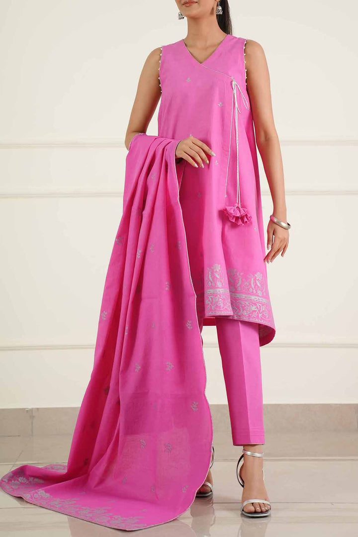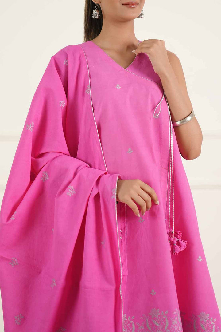 Step Into Timeless Grace With This Unstitched Jacquard Cotton 3-Piece Suit By SAYA, Crafted For The Woman Who Appreciates Texture, Detail, And Versatility. The Shirt Is Made From Rich Jacquard Cotton, Adorned With Delicate Woven Patterns That Lend A Touch Of Sophisticated Charm. It Is Paired With A Dyed Trouser And A Coordinated Jacquard Dupatta, Creating A Balanced Ensemble Suitable For Daytime Gatherings, Semi-Formal Occasions, Or Elevated Everyday Wear