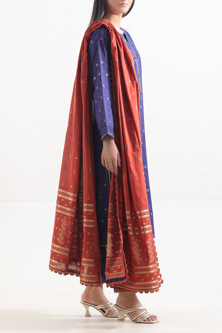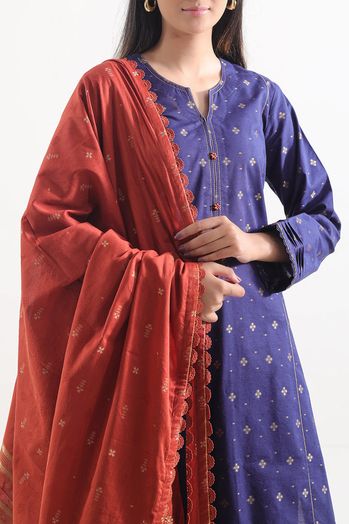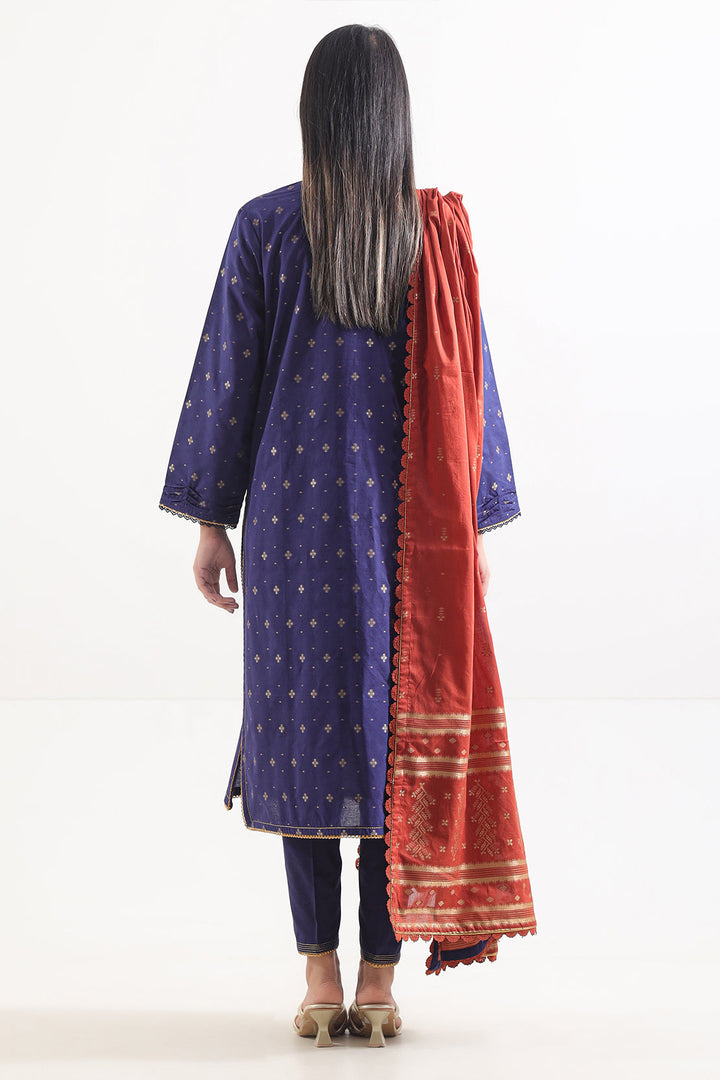Elevate Your Festive Wardrobe With SAYA’s Unstitched Jacquard Cotton 3-Piece, Featuring A Subtly Textured Jacquard Shirt, A Dyed Cotton Trouser, And A Beautifully Coordinated Jacquard Dupatta. This Ensemble Combines Comfort And Grace—Perfect For Semi-Formal Gatherings And Elegant Daywear.
