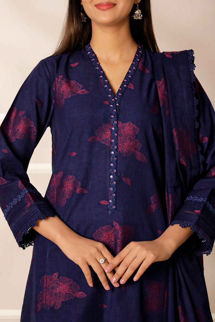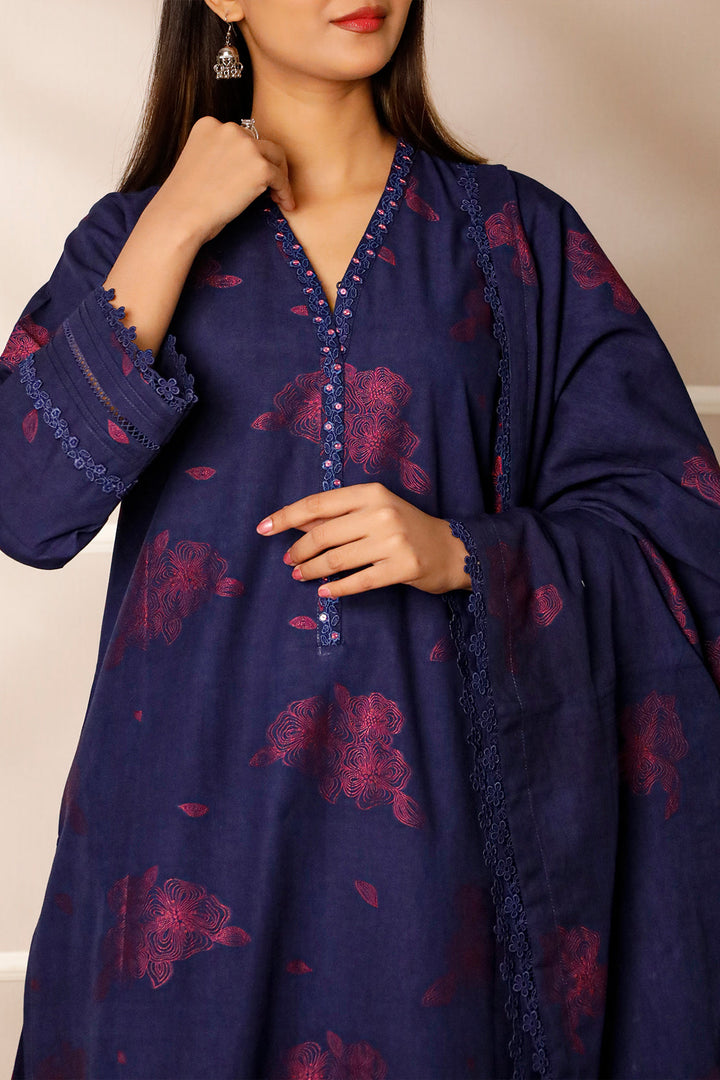 3-Piece Ensemble Crafted From Cotton Jacquard That Harmonizes Rich Texture With Breathable Comfort. The Unstitched Shirt Showcases Intricate Self-Jacquard Weave, Offering Subtle Depth And Tailoring Freedom For A Personalized Fit. Accompanied By A Coordinated Jacquard Dupatta For Seamless Design Continuity, And A Dyed Cambric Trouser That Introduces Structure And Ease. This SAYA Set Blends Sophisticated Fabrication With Elevated Utility—Ideal For Elegant Festivities, Refined Daywear, Or Bespoke Styling With Minimal Effort.