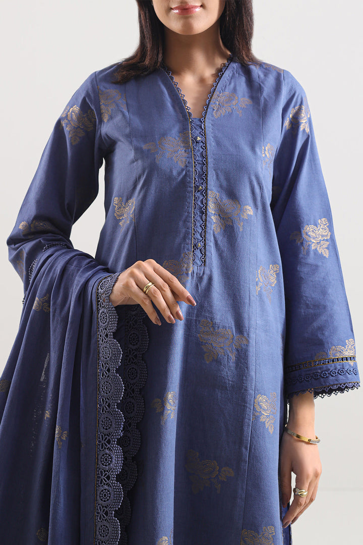 This Unstitched Jacquard Cotton 3-Piece Set By SAYA. The Jacquard Cotton Fabric Features Intricate, Raised Patterns Woven Into The Weave — Not Printed — Offering Both Rich Texture And Subtle Elegance. The Shirt Presents A Sophisticated Three-Dimensional Design That Feels Premium Yet Remains Comfortable. A Matching Dupatta Enhances The Look With Graceful Fluidity, While The Dyed Trouser Panel Gives Structure And Tailoring Flexibility. This Ensemble Is Perfect For Festive Tailoring, Elevated Daywear, Or Bespoke Winter Pieces Where Quality, Warmth, And Style Come Together.