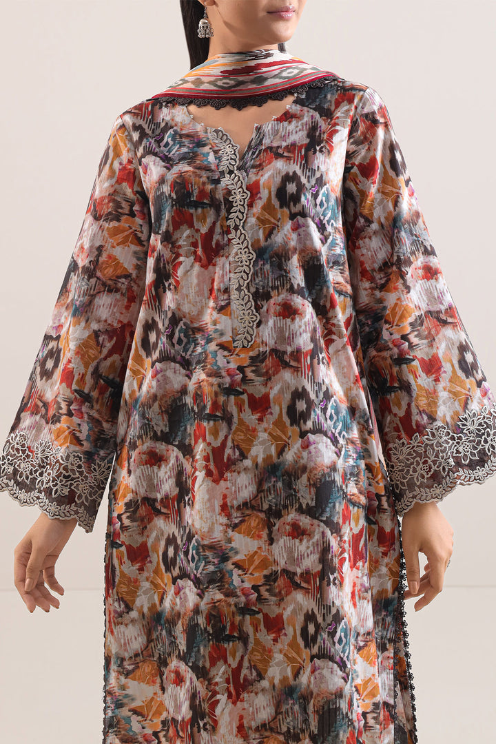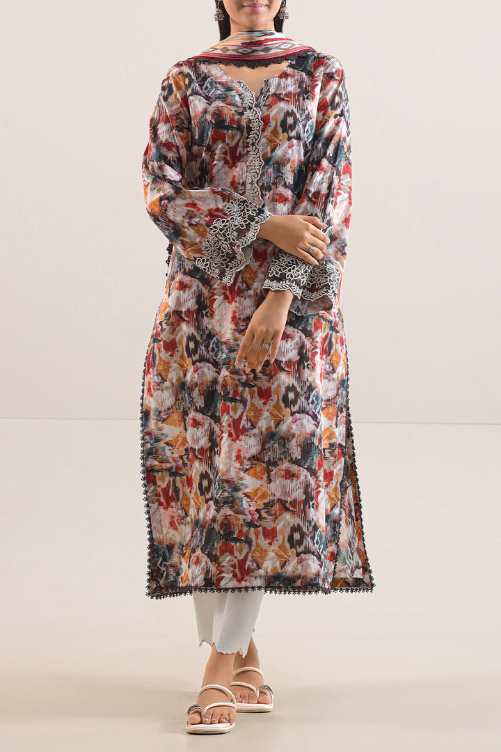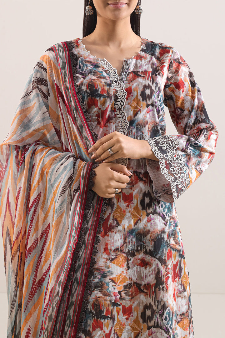 Unstitched Printed Embroidered Cotton Tencel 3 Piece With Chiffon Dupatta