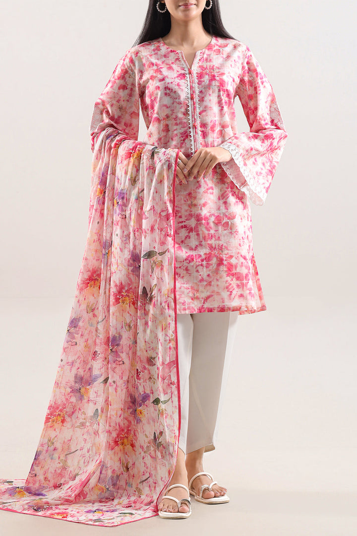 SAYA Unstitched Printed Embroidered Lawn 3-Piece Combines Feather-Light Lawn Fabric With Elegant Print And Fine Embroidery On The Shirt Panel, Accompanied By Matching Dupatta And Coordinated Trouser Panel. Ideal For Daytime Events Or Festive Gatherings, It Offers Tailoring Flexibility, Breezy Comfort, And Subtle Sophistication.
