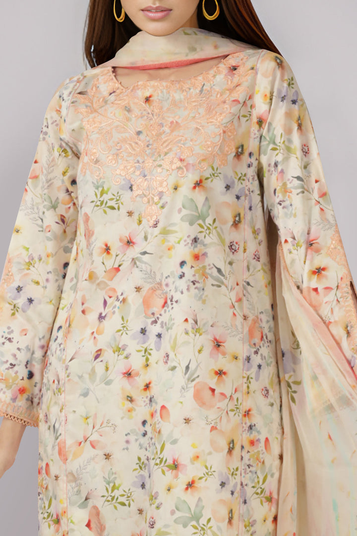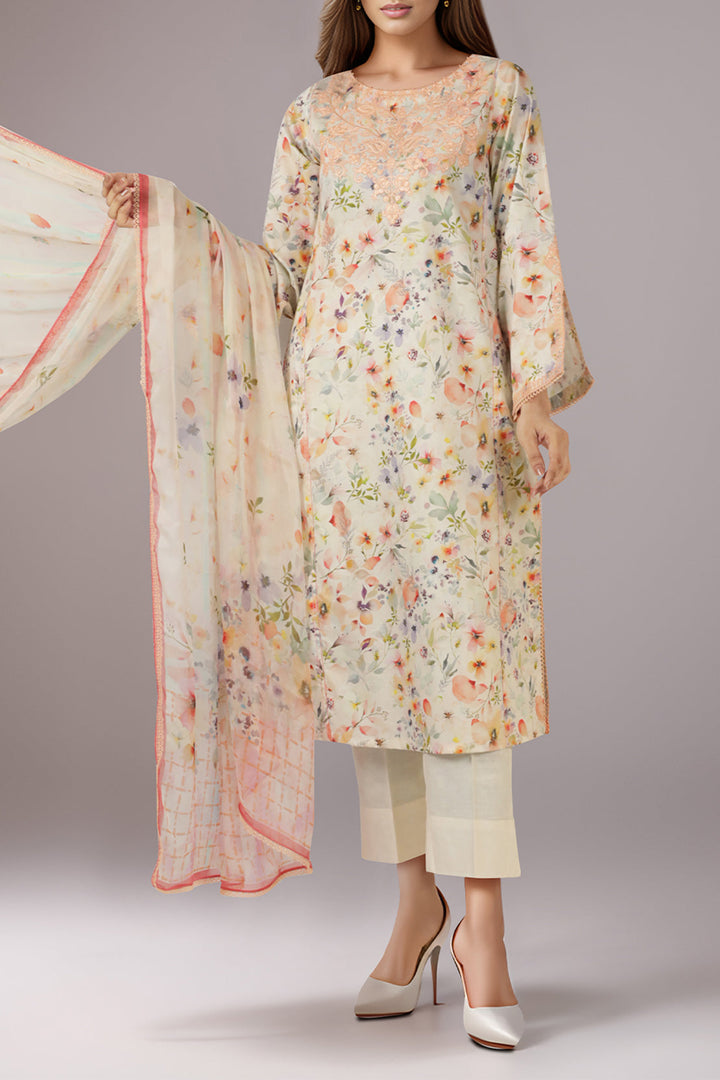 Unstitched Printed Embroidered Self Jacquard 3 Piece With Chiffon Dupatta
