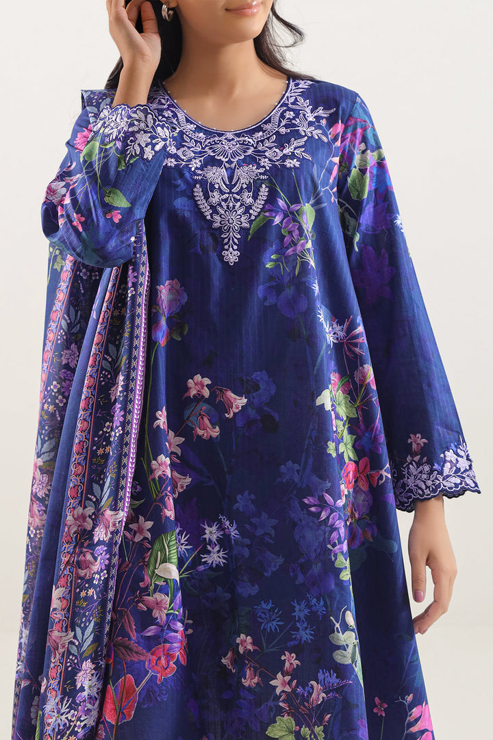 Unstitched Printed Embroidered Strip Lawn 3-Piece By SAYA Features A Cool Deep Blue Tone. Crafted From Ultra-Light Lawn Fabric With Elegant Vertical Stripes And Subtle Embroidery, This Set Offers Breathable Comfort And Tailoring Flexibility. The Shirt Panel Arrives With Ample Width For Custom Stitching, The Trouser Fabric Is Premium Dyed Cambric, And The Coordinated Printed Lawn Dupatta Adds Flow And Finish. Ideal For Daytime Festive Gatherings Or Summer Soirée Wear Where Style Meets Ease.