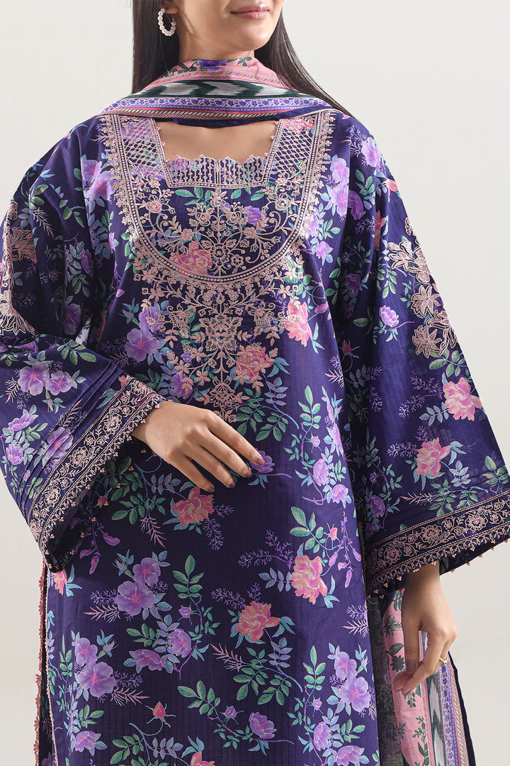 Unstitched Printed Embroidered Strip Lawn 3 Piece