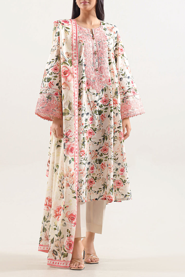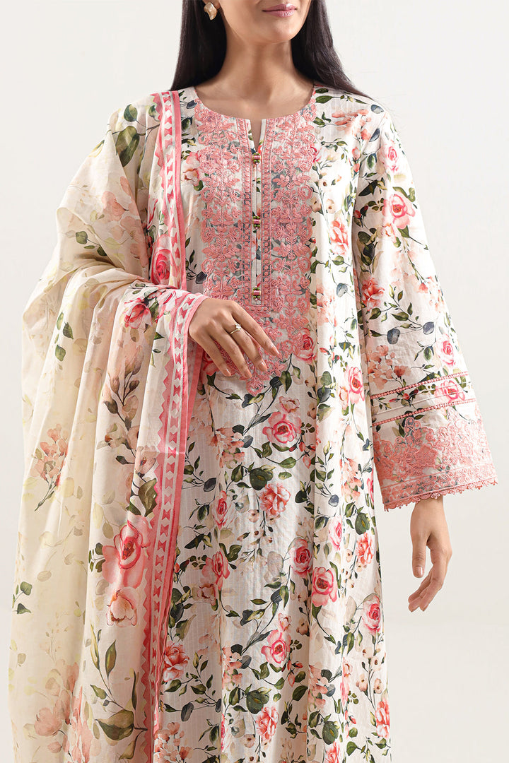 Unstitched Printed Embroidered Strip Lawn 3 Piece