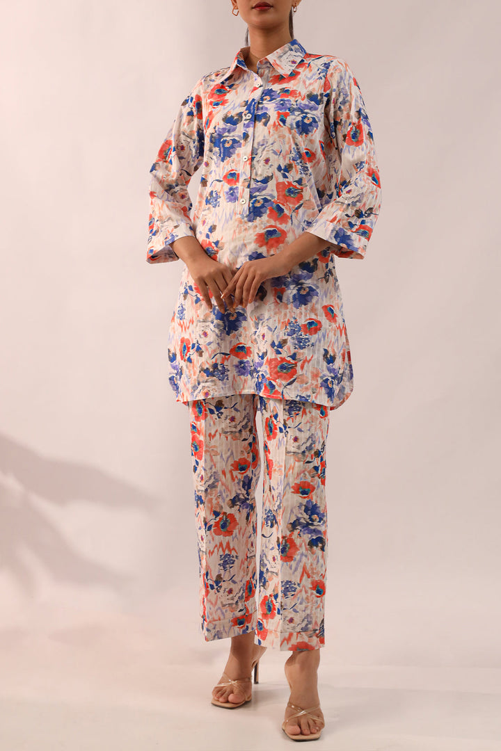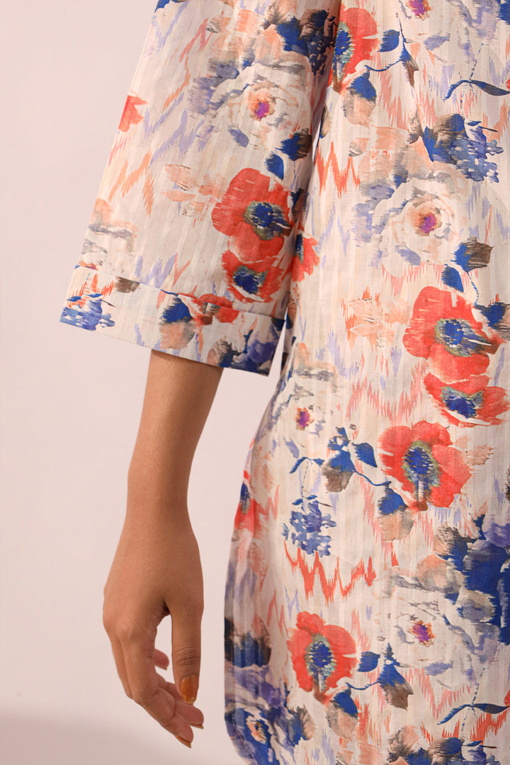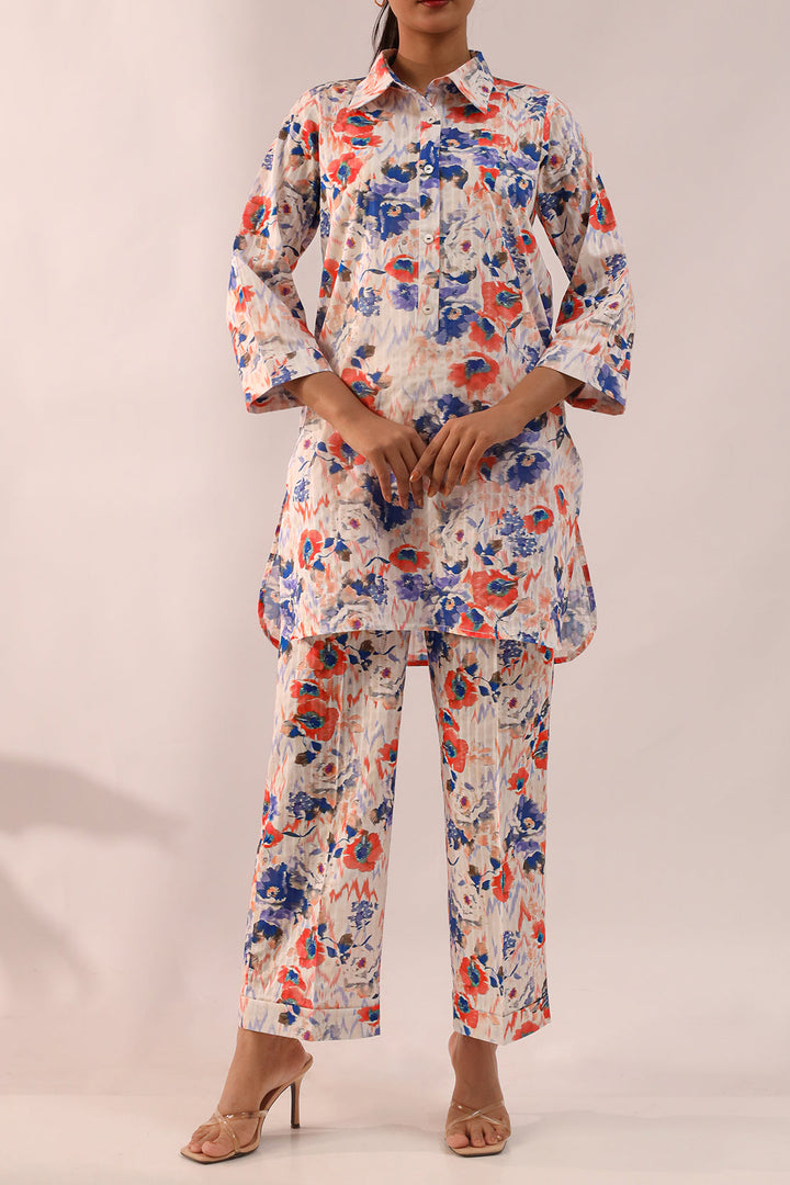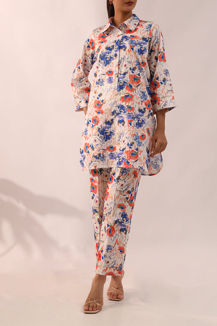 A soft unstitched lawn 2-piece set in summery tones with digitally printed floral motifs. Ideal for everyday and casual wear, this breathable lawn suit offers comfort with elegance. Perfect for tailoring to your unique fit and style.