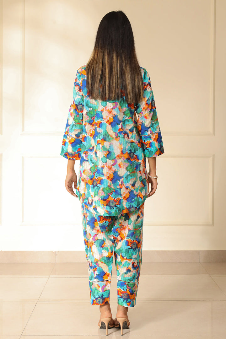 Elevate your summer wardrobe with Saya's Unstitched Printed Lawn Shirt/Trouser set in a vibrant multicolor palette. Crafted from premium self-stripe lawn fabric, this ensemble offers both comfort and elegance. Perfect for casual outings and semi-formal gatherings, it reflects Saya's commitment to quality and contemporary design.