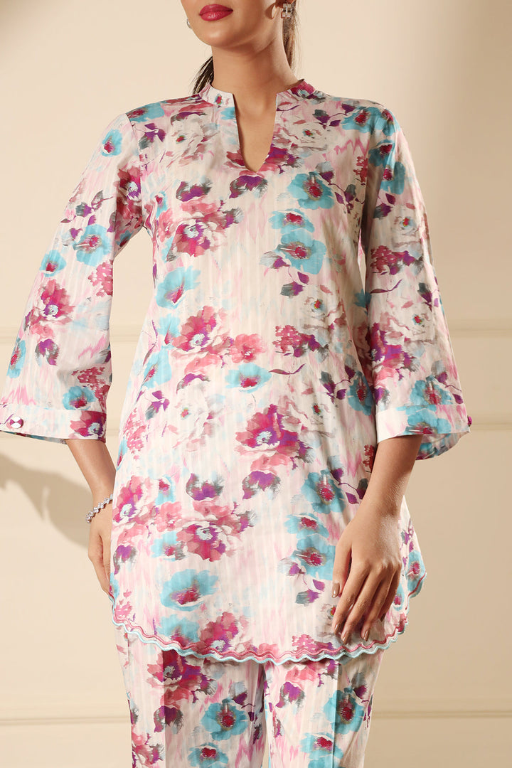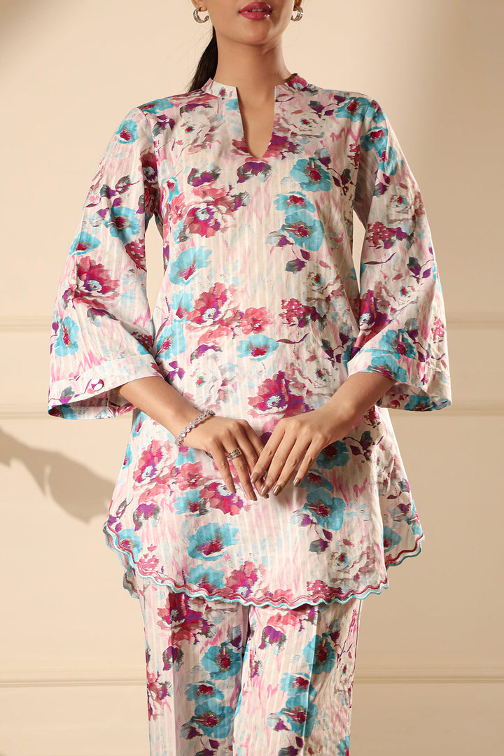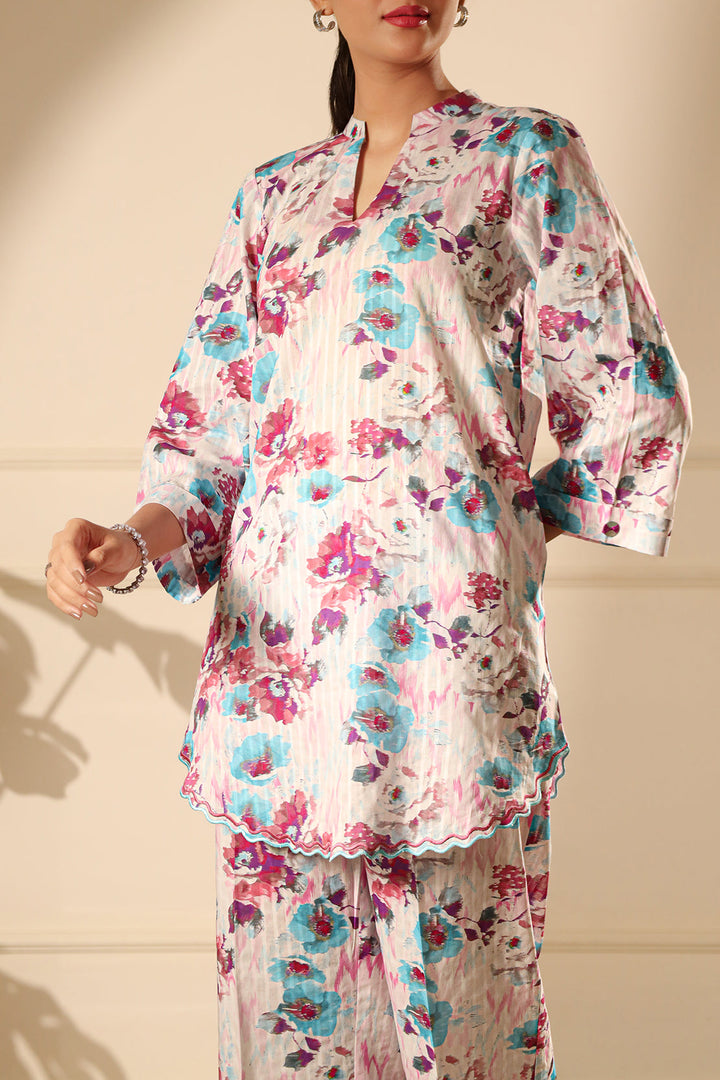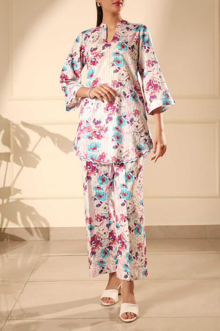Saya’s Unstitched Printed Lawn 2-Piece Shirt & Trouser set captures the essence of summer elegance with its delicate floral prints and airy lawn fabric. Ideal for warm days, this lightweight ensemble promises comfort and versatility, making it a must-have for casual outings or relaxed gatherings. Express your unique style effortlessly.
