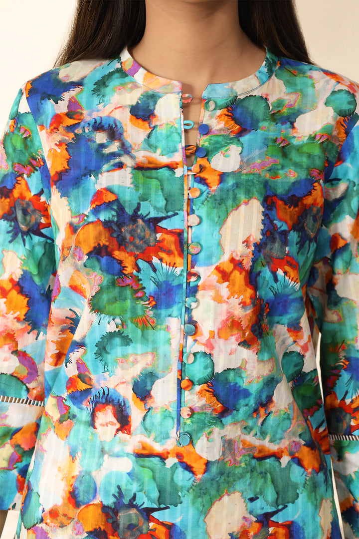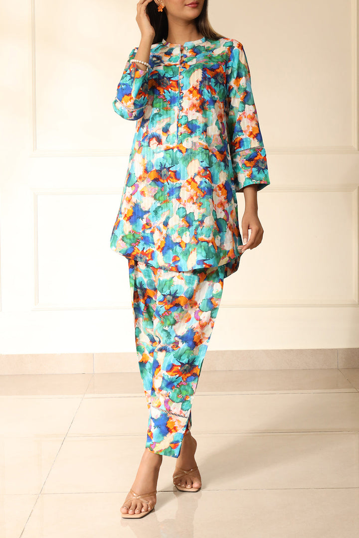 Elevate your summer wardrobe with Saya's Unstitched Printed Lawn Shirt/Trouser set in a vibrant multicolor palette. Crafted from premium self-stripe lawn fabric, this ensemble offers both comfort and elegance. Perfect for casual outings and semi-formal gatherings, it reflects Saya's commitment to quality and contemporary design.