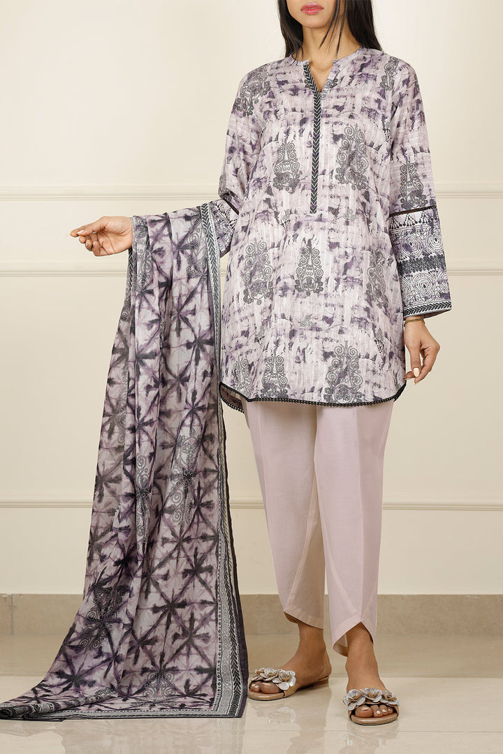 Infuse elegance into your wardrobe with this unstitched 3-piece lawn set from Saya. Featuring a digitally printed lawn shirt paired with a matching printed dupatta and dyed trouser, this ensemble blends comfort with vibrant style—perfect for daily wear or casual gatherings.