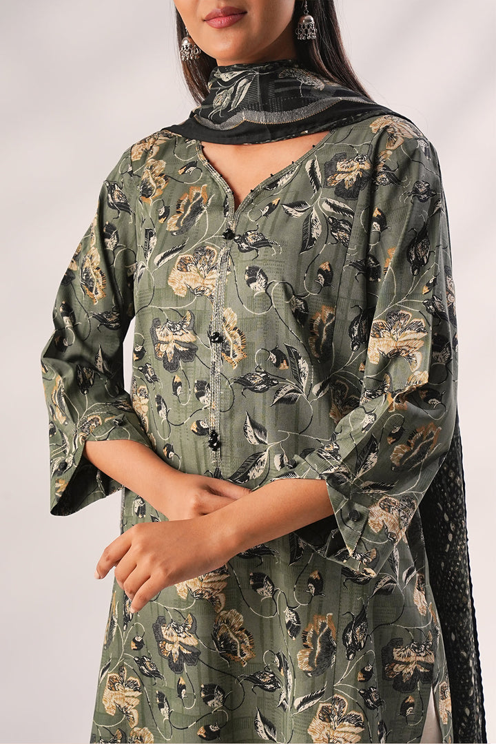Infuse Your Summer Wardrobe With This SAYA Unstitched Printed Lawn 3‑Piece Ensemble. Crafted From Soft, Breathable Lawn Fabric, The Shirt Features A Refreshing Print That Reflects Seasonal Elegance. Paired With A Dyed Trouser And A Coordinated Printed Dupatta, This Set Offers Comfort, Versatility, And Personalized Tailoring Options. Ideal For Daytime Gatherings, Casual Wear, Or Light Festive Looks, It Blends Color With Graceful Style And Wearable Comfort.