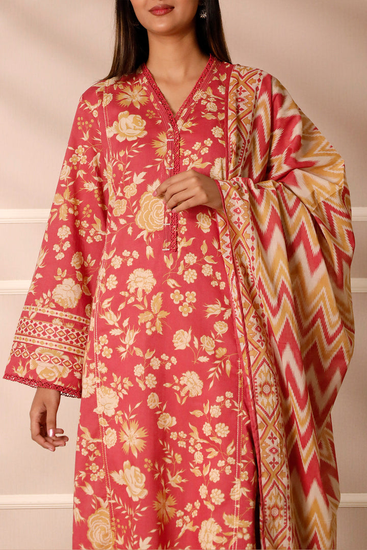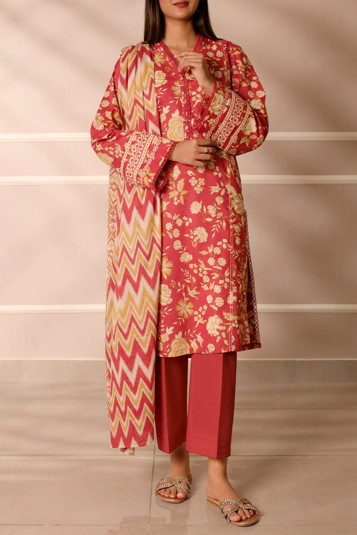 Infuse Your Summer Wardrobe With This SAYA Unstitched Printed Lawn 3‑Piece Ensemble. Crafted From Soft, Breathable Lawn Fabric, The Shirt Features A Refreshing Print That Reflects Seasonal Elegance. Paired With A Dyed Trouser And A Coordinated Printed Dupatta, This Set Offers Comfort, Versatility, And Personalized Tailoring Options. Ideal For Daytime Gatherings, Casual Wear, Or Light Festive Looks, It Blends Color With Graceful Style And Wearable Comfort.