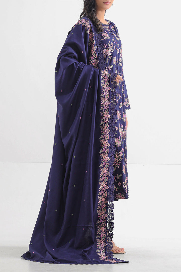 Unstitched Solid Embroidered Arabic Linen 3 Piece