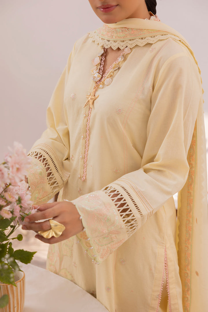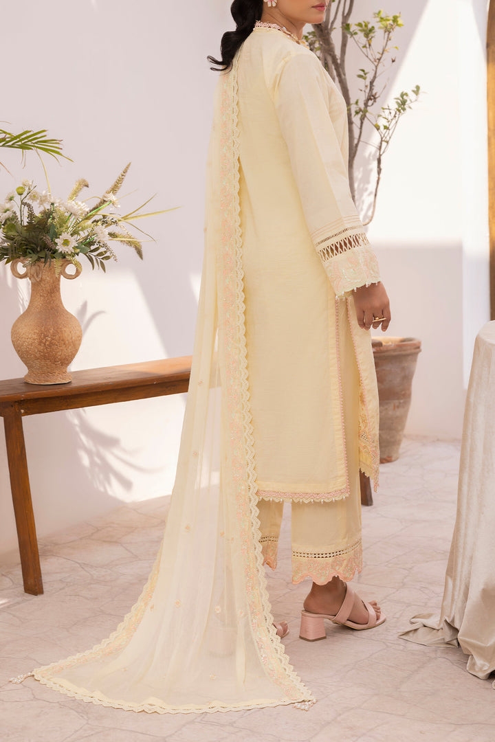 Step into sophistication with Saya’s Unstitched Solid Embroidered Cambric 3-Piece Suit. Crafted from high-quality cambric fabric, this suit features detailed embroidery on the shirt and a luxurious chiffon dupatta that adds an airy elegance. Ideal for semi-formal occasions and festive events, it’s designed to let your personal style shine through customization.