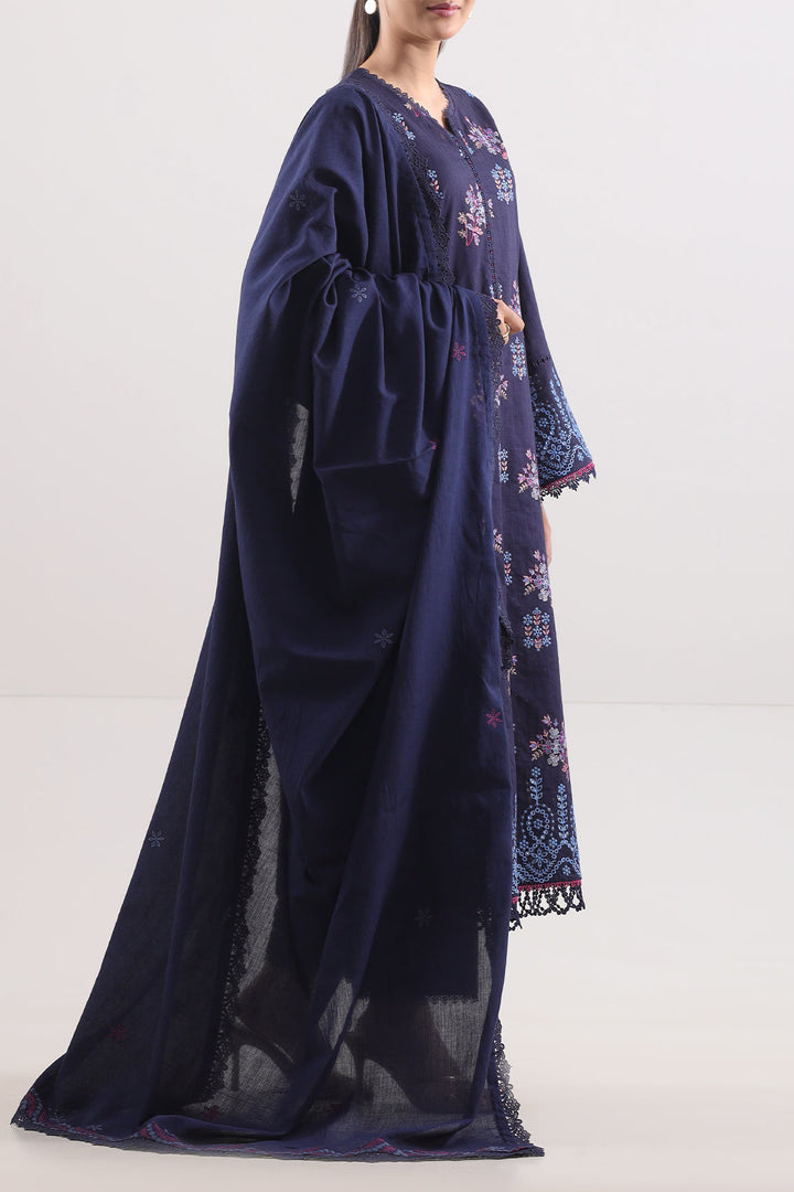 Unstitched Solid Embroidered Cotton Khaddar 3 Piece