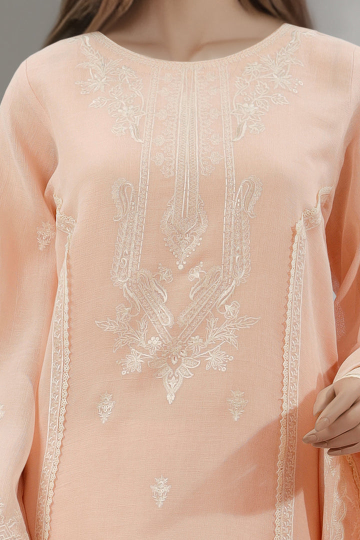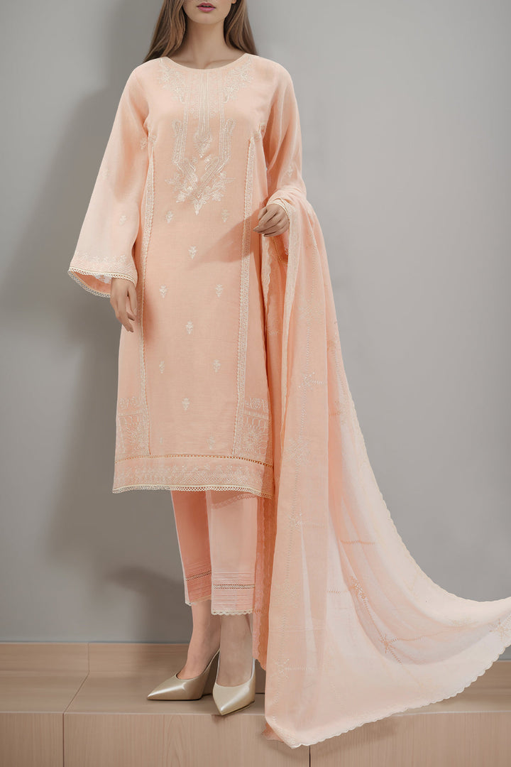 Unstitched Solid Embroidered Cotton Net 3 Piece
