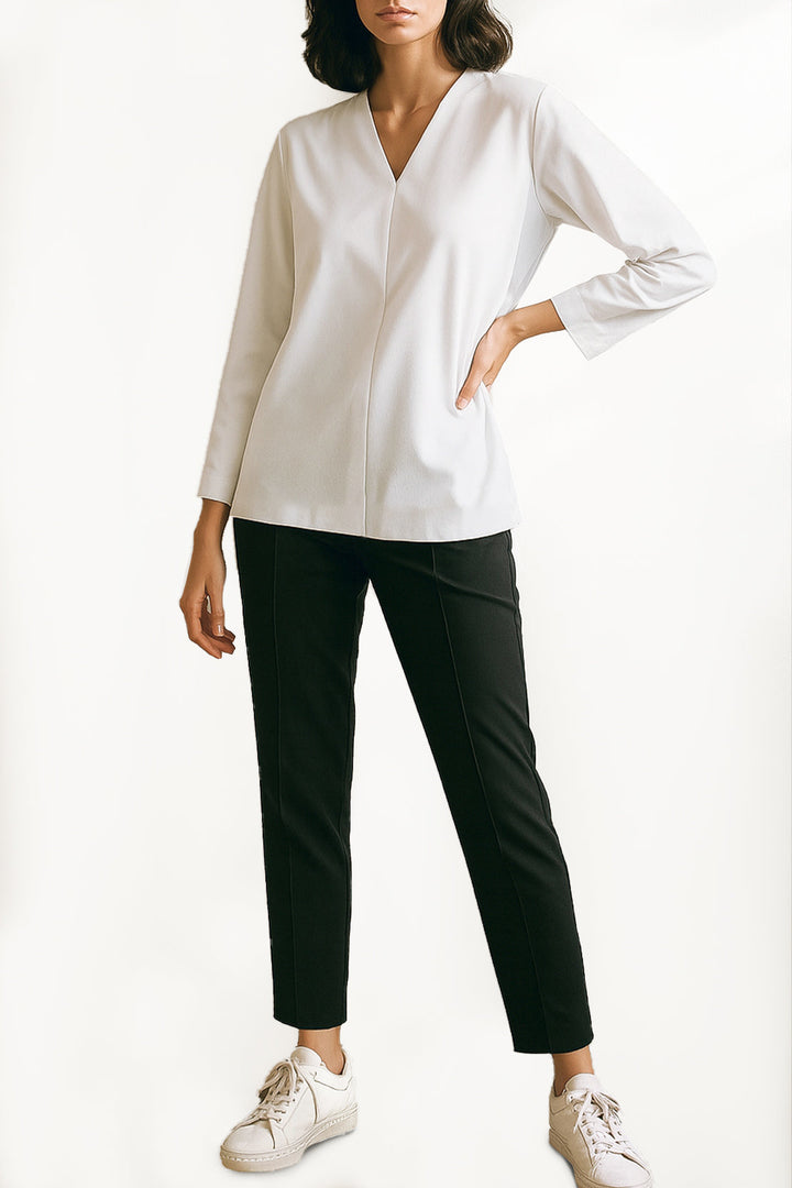 The “V-Neck Wide Sleeve Crepe Top – Ice White” By SAYA Embodies Minimalist Sophistication With Sculptural Grace. Expertly Crafted From Light Yet Structured Crepe Fabric, This Piece Features A Refined V-Neckline And Voluminous Wide Sleeves That Create Fluid Movement. The Crisp Ice White Shade Infuses Purity Into Layers And Stands Alone With Polished Ease—Perfect For Daytime Elegance, Layering Chic Evenings, Or Modern Minimalist Styling.
