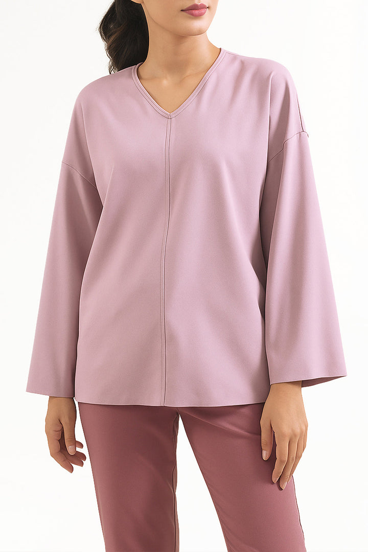 Elevate Everyday Elegance With The “V-Neck Wide Sleeve Crepe Top – Dusty Pink” By SAYA. Crafted From Silken Crepe With A Soft Sheen, This Top Features A Gracefully Cut V-Neckline And Generously Draped Sleeves That Add Flow And Flair. The Dusty Mauve Tone Offers A Muted, Romantic Edge—Perfect For Transitional Styling Or Refined Layering.