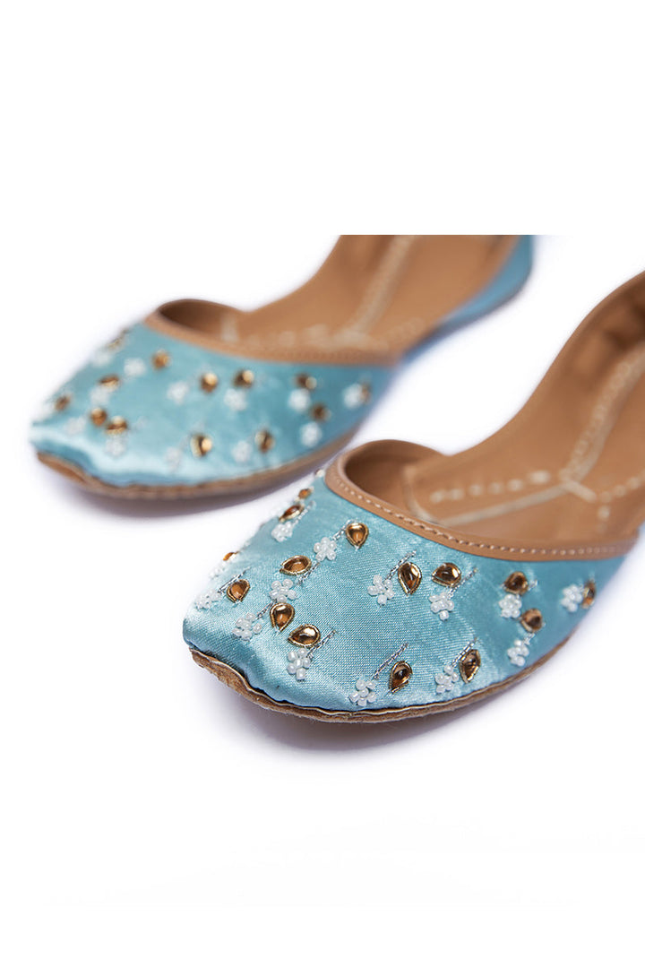 VERA is a handmade Khussa crafted with intricate bead work and luxurious satin material. The padded insocks provide added comfort while the leather outsole ensures durability. Perfect for adding a touch of elegance to any outfit.