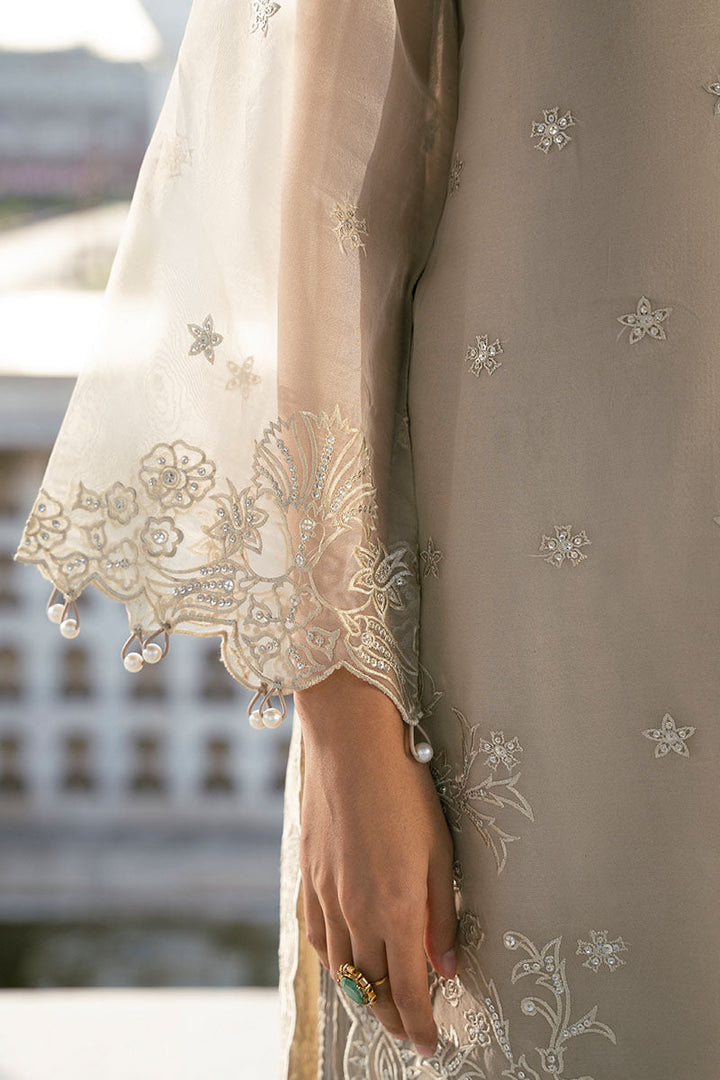 - Introducing VERDANT TWIST - a stunning A-line shirt with a scallop hem, side slits, and a beautifully embroidered back. The sequin and adda work on the neckline add a touch of glamour, while the loose sleeves with loop pearl embellishment provide a comfortable yet elegant fit. Paired with a culotte silk trouser and an embroidered organza dupatta for a complete sophisticated look.