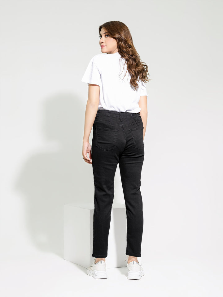 Dyed skin-fitted mid-rise waist jeans with two pockets on the front and back