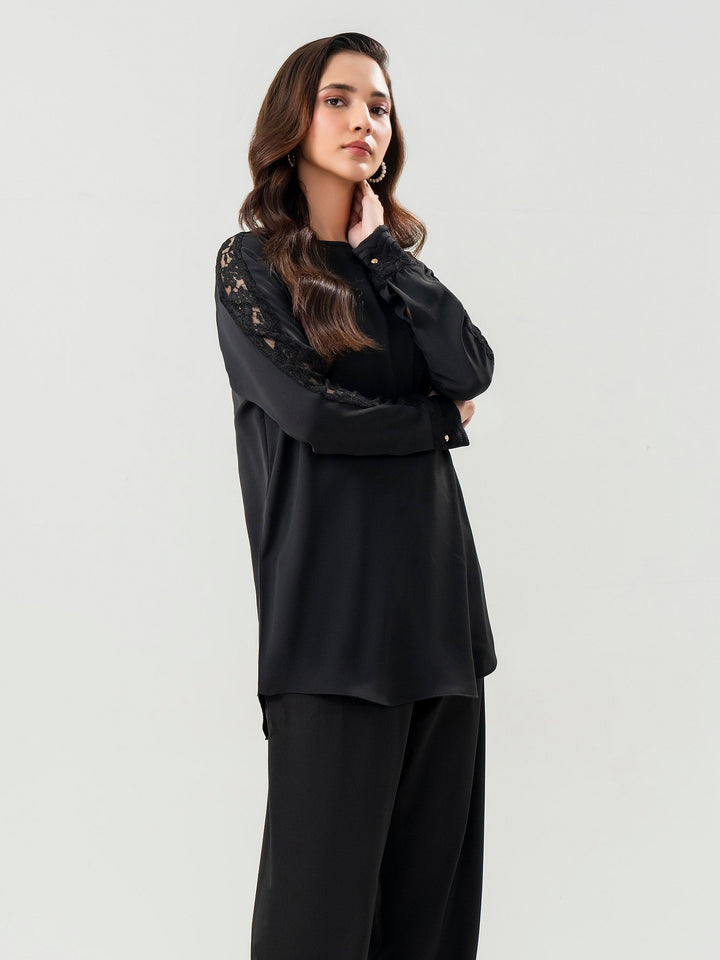 - Dyed top with net patch on sleeves