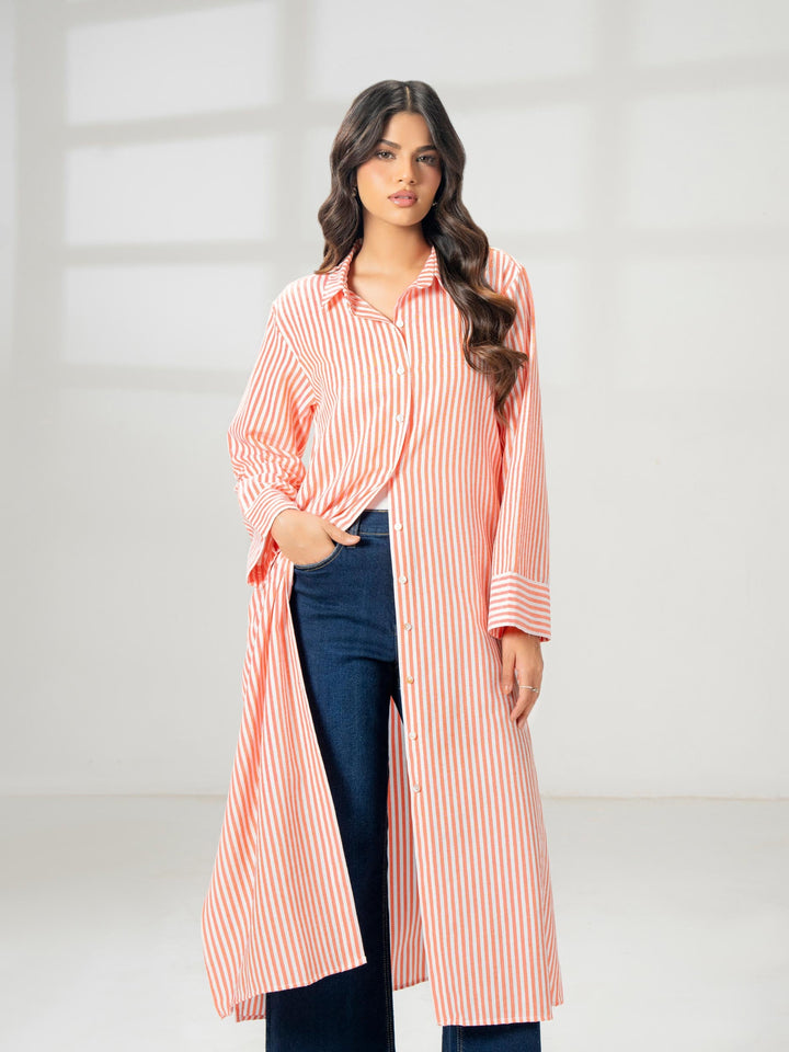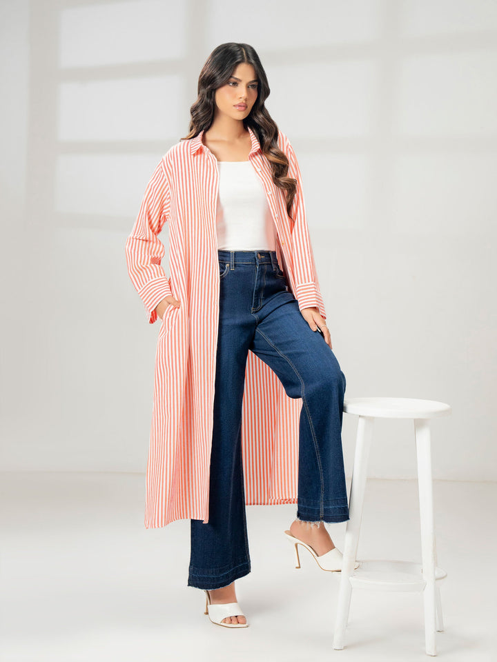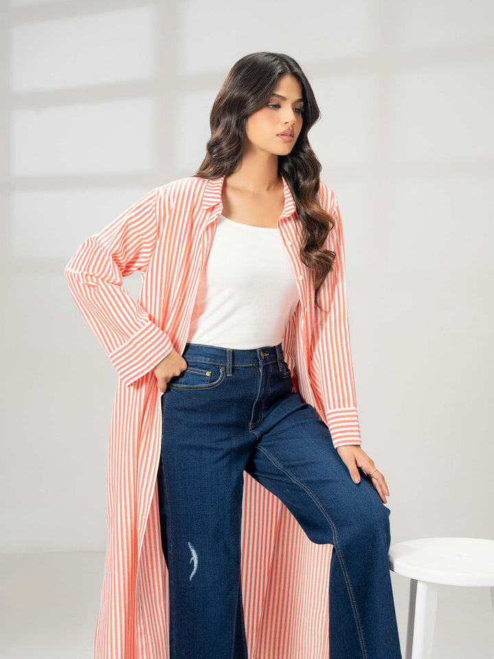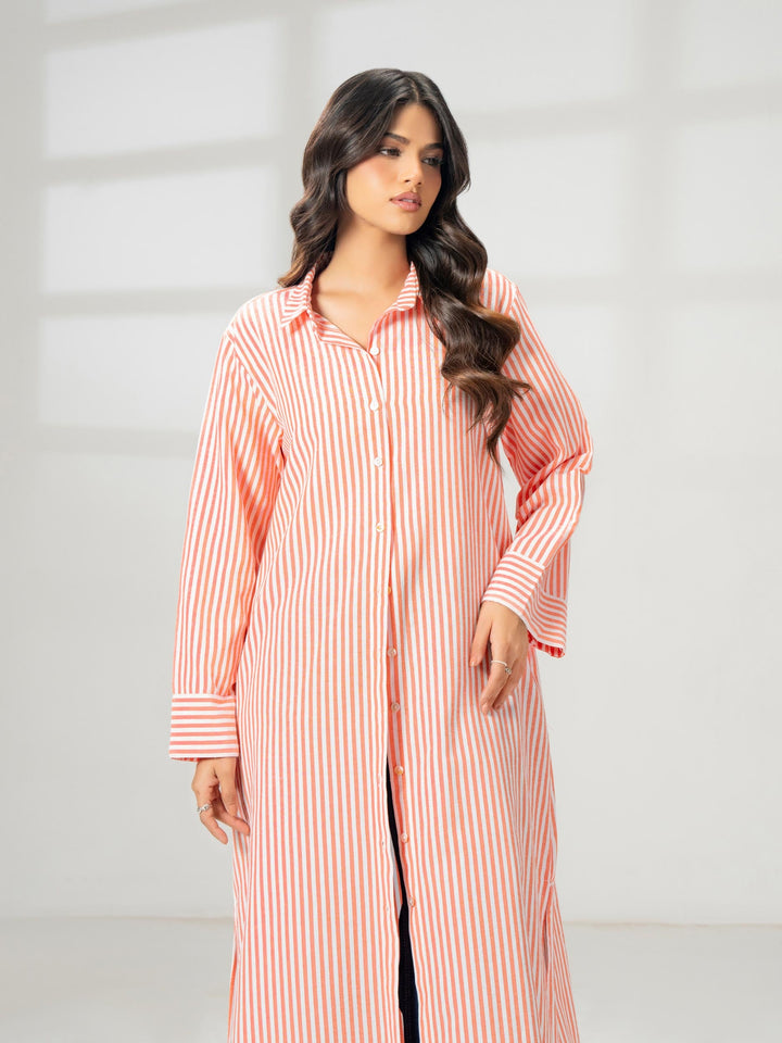 - Stripe printed button down dress