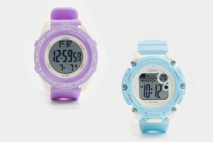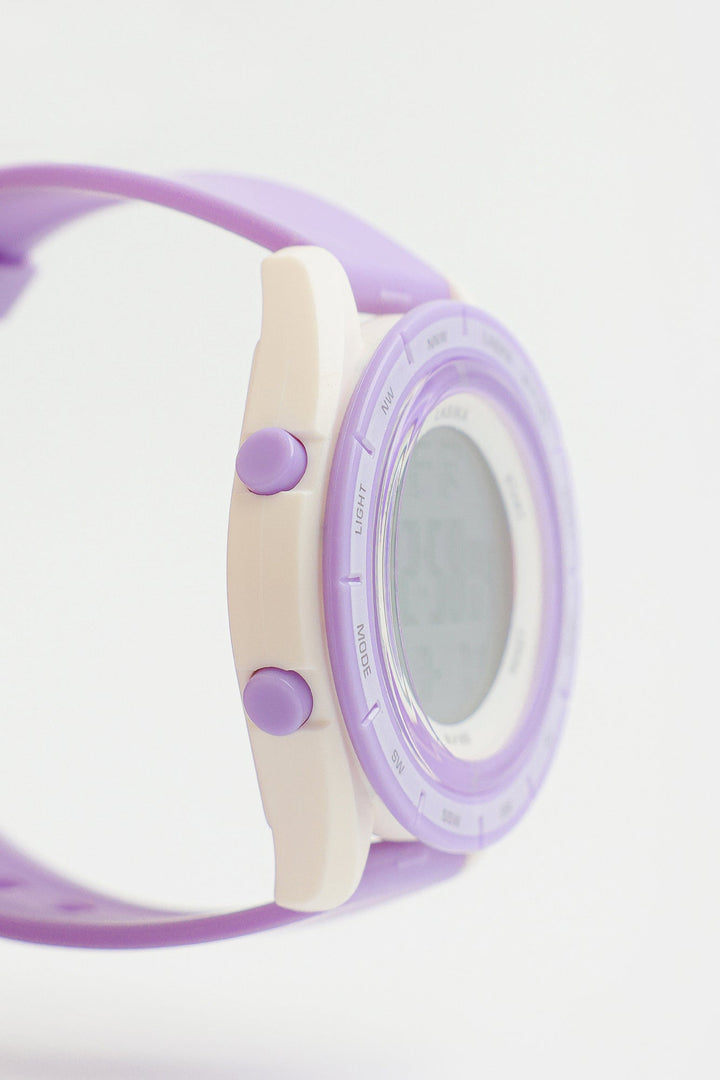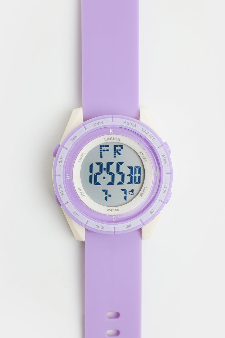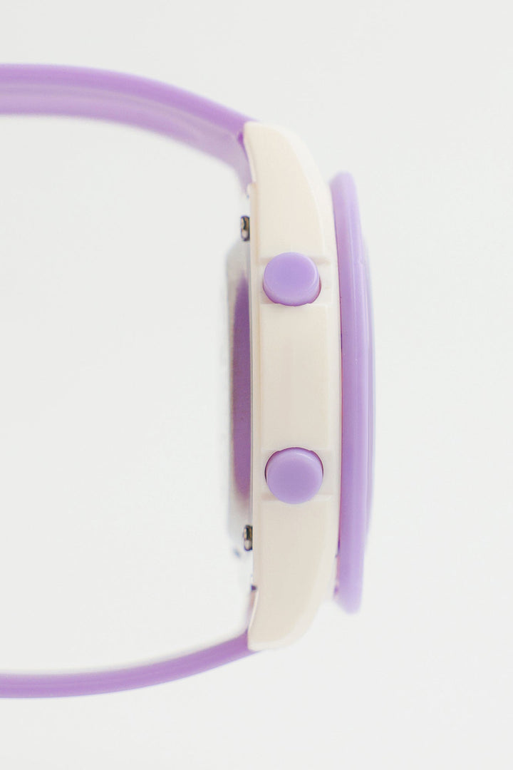 A trendy yet fashionable digital watch for your girls with light purple strap showcasing a classic design with modern functionality. These digital watches are easy to read and perfect for kids to tell time. Let your girls add this perfect accessory to their statement look.
