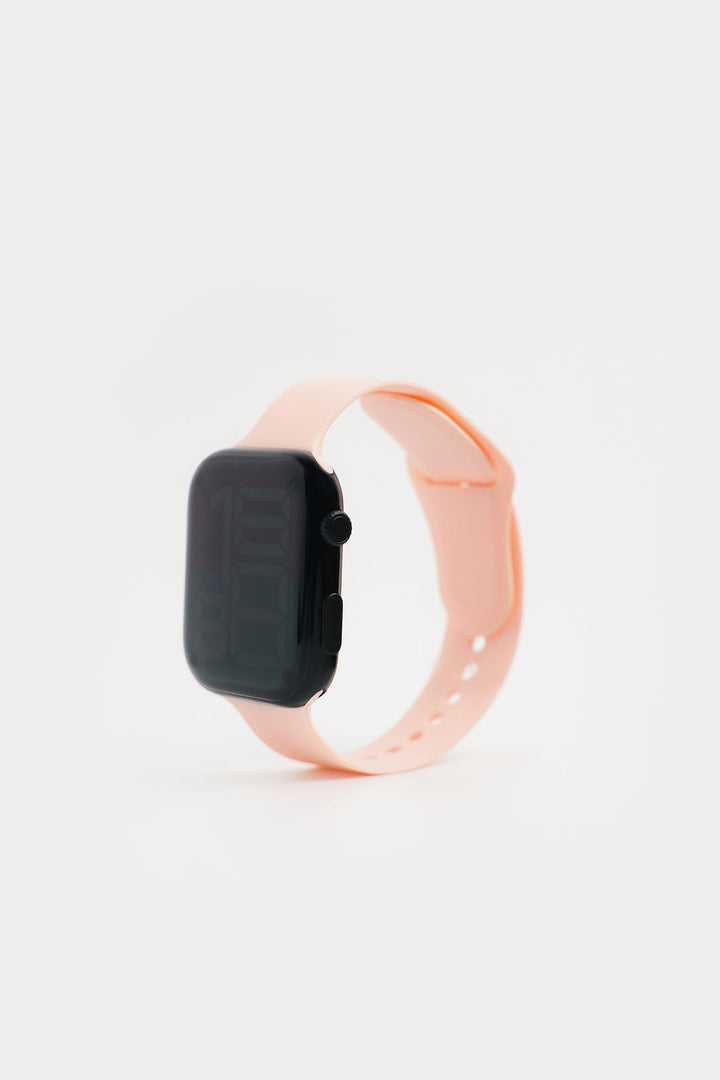 Experience the perfect combination of style and functionality with this classy digital watch. Featuring a rectangle-shaped digital screen, this trendy accessory showcases a classic design that is both fashionable and practical. The light pink color on the strap add a touch of charm. Elevate your look with this must-have digital watch for girls.
