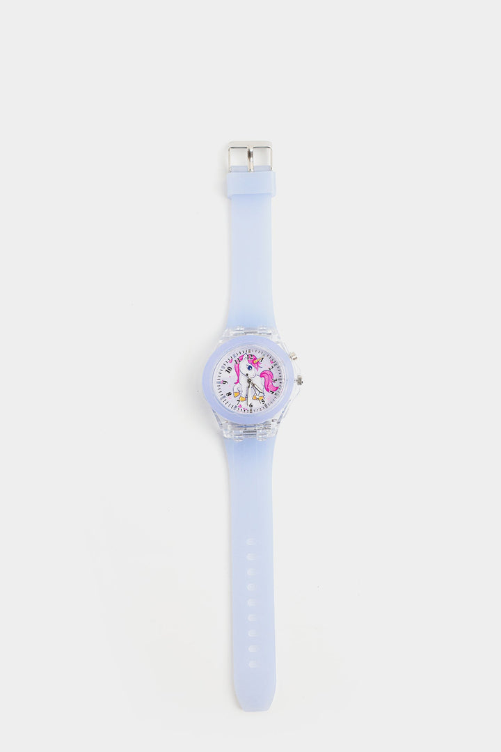 A trendy yet fashionable digital watch for your girls with a lilac strap showcasing a classic design with unicorn theme. These watches are easy to read and perfect for kids to tell time. Let your girls add this perfect accessory to their statement look.