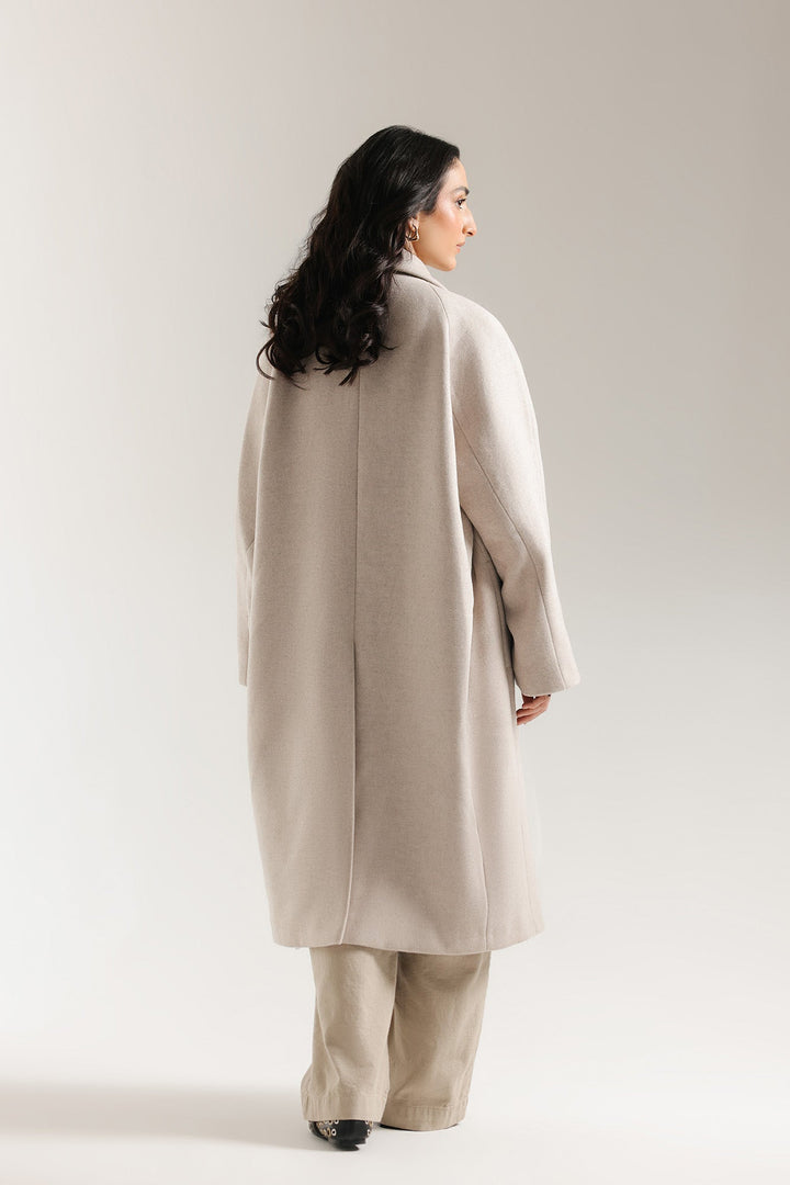 Unveil refined elegance with this exquisite long coat in a chic, white hue. This coat features a sweeping, full-length silhouette and a luxurious, soft-textured fabric. The design is kept clean and sophisticated with wide lapels and a double-breasted, partially hidden closure. The comfortable oversized fit drapes beautifully, making it the perfect timeless essential for adding warmth and elevated, minimalist style to any winter wardrobe.
