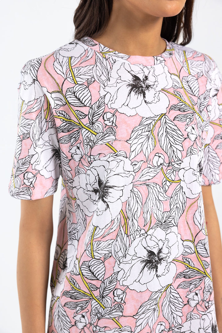 This stylish t-shirt is the perfect combination of comfort and modern fashion. Crafted in airy fabric, this t-shirt features half sleeves, a round neck, portrayed in a subtle shade and and adorned with artistic floral prints. A great option for casual gatherings.