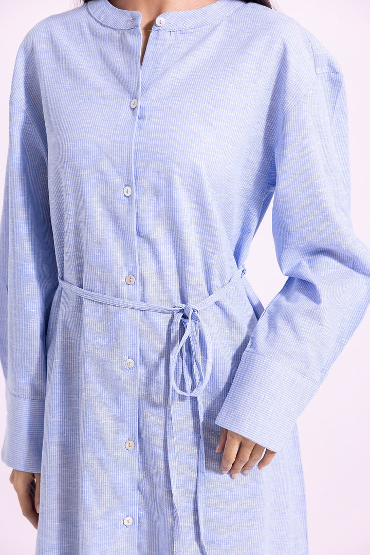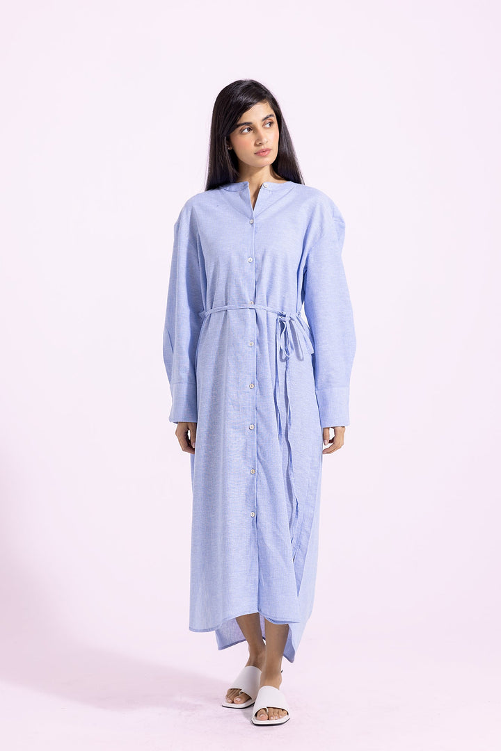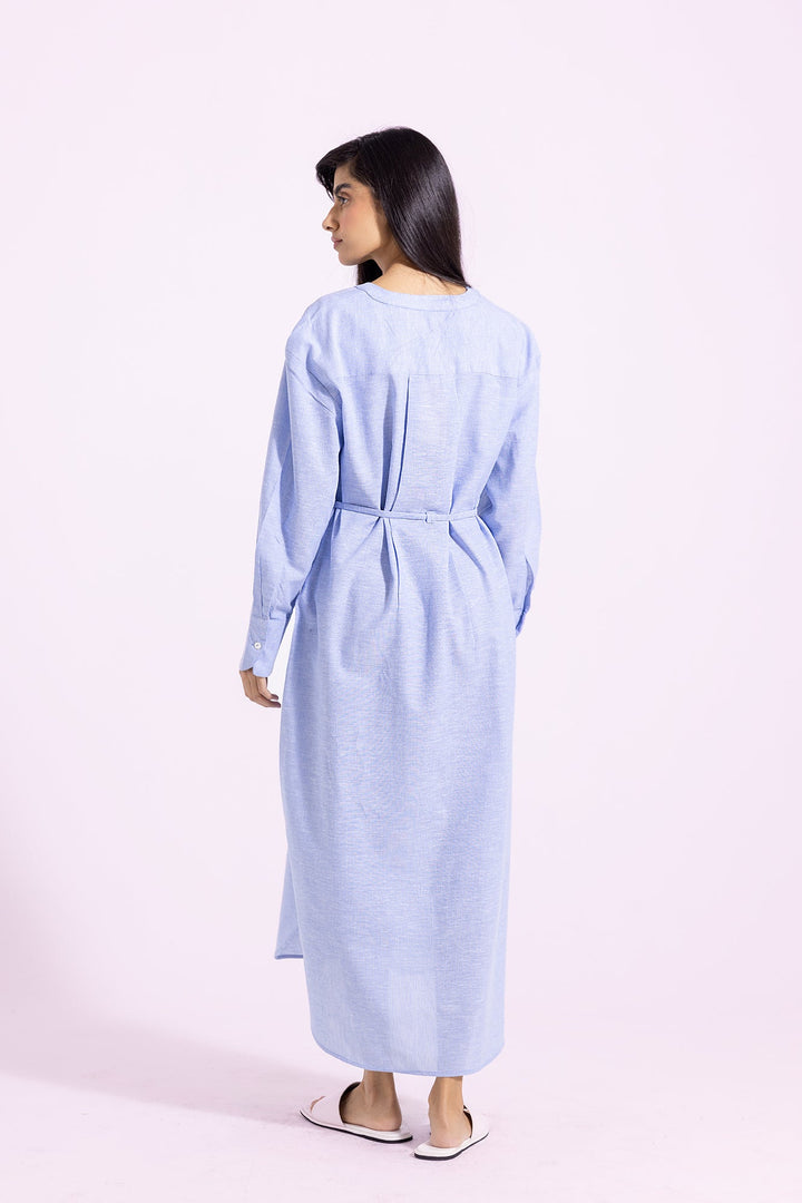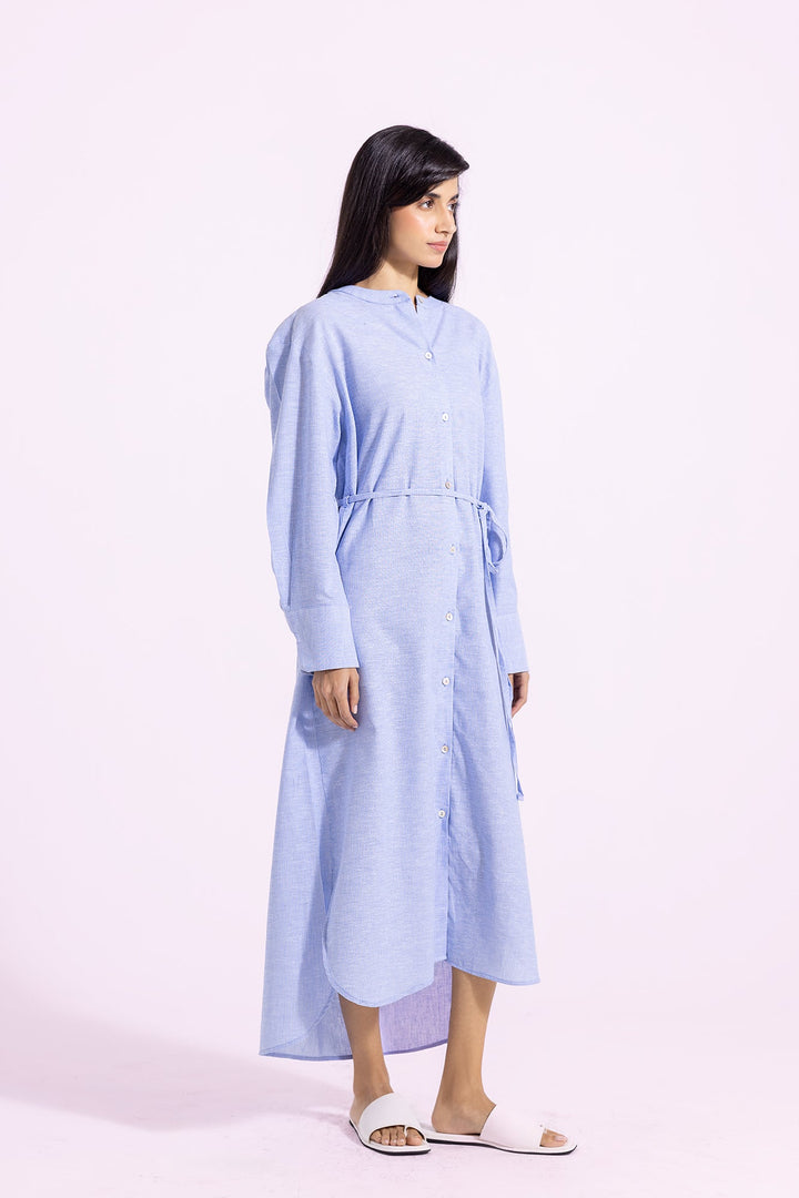 This graceful dress is the perfect statement piece for any fun event. It features an elegant, button down silhouette portrayed in a soft baby blue color illustrating a contemporary look. Wear it at day events this season and it's a must-have for any fashionista.