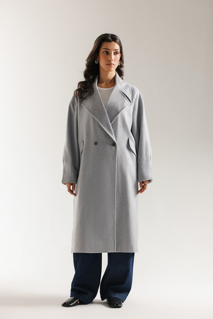 Elevate your outerwear with this supremely chic, long grey coat. Crafted in a rich, structured fabric, this coat features an oversized, slouchy silhouette that exudes effortless sophistication. It boasts wide lapels, a double-breasted button closure, and a generous length that falls well below the knee. The design's clean lines and minimalist aesthetic make it a timeless investment piece, perfect for layering over any look for a dramatic and polished finish.