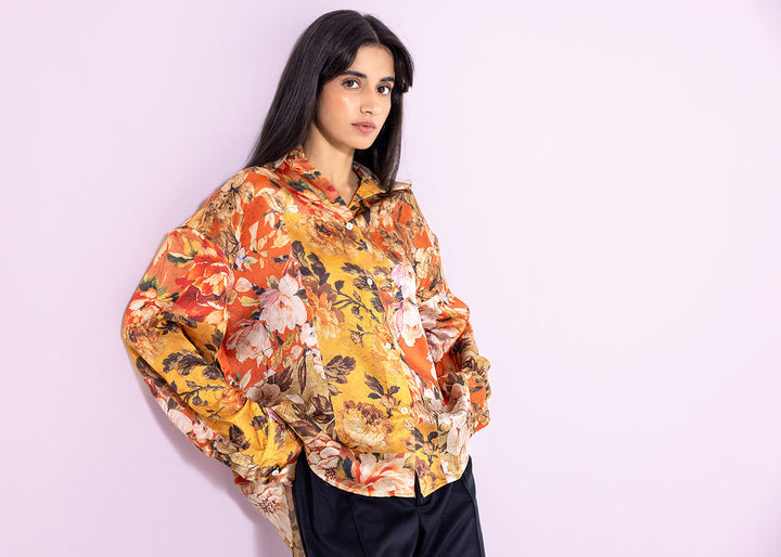 A chic and trendy design is portrayed on this contemporary button down shirt illustrated in pale orange shade. Enriched with aesthetically floral prints in vibrant colors, this elegant shirt is a must have to embrace the sassy look this season.