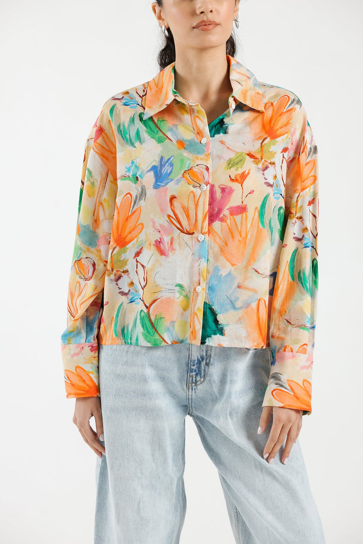 A chic and trendy design is portrayed on this contemporary button down shirt illustrated in bright yellow shade. Enriched with aesthetically floral prints in vibrant colors, this elegant shirt is a must have to embrace the sassy look this season.