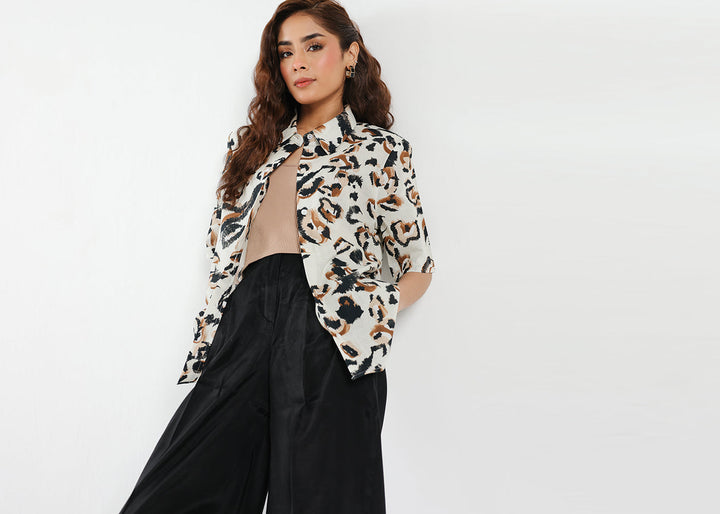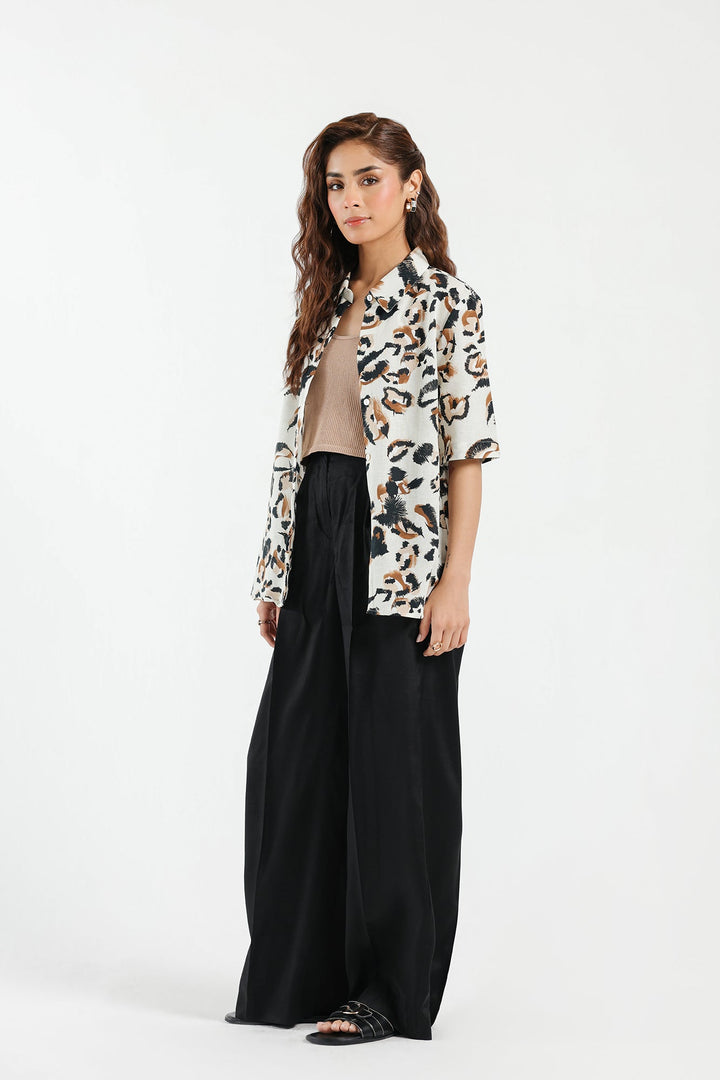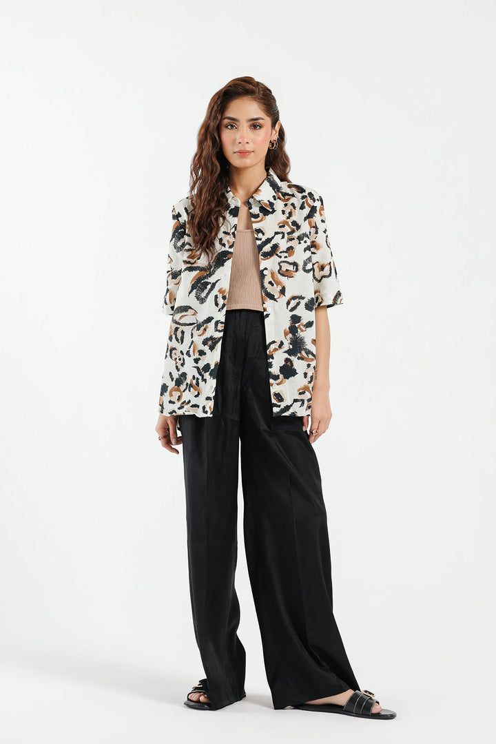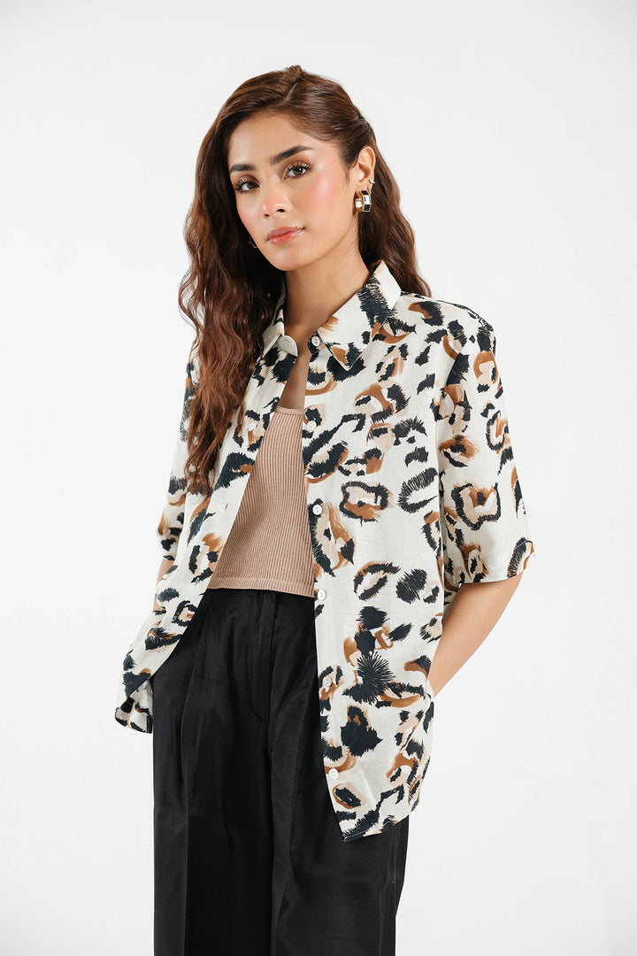 A chic and trendy design is portrayed on this contemporary button down shirt illustrated in off white shade. Enriched with aesthetically rich artistic prints portrayed in vibrant orange, mustard and black color, this elegant shirt is a must have to embrace the sassy look this happening season.