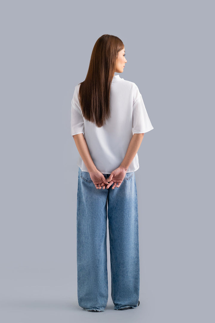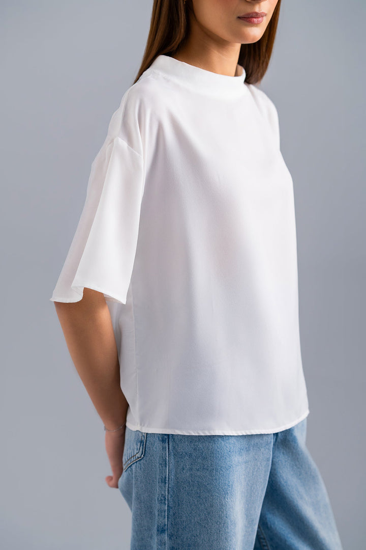This white ban round neck top is the perfect staple piece for any wardrobe, it offers both comfort and style. The elegant silhouette adds a touch of sophistication to any outfit. Upgrade your wardrobe with this versatile and timeless solid top.
