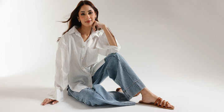 Embrace understated sophistication with this crisp white shirt, subtly striped for a touch of visual texture. The relaxed, oversized silhouette offers a comfortable yet stylish fit, perfect for layering or wearing on its own. A classic chest pocket adds a practical detail to this versatile piece. Pair it with denim for a relaxed vibe or tailored trousers for a more elevated look.