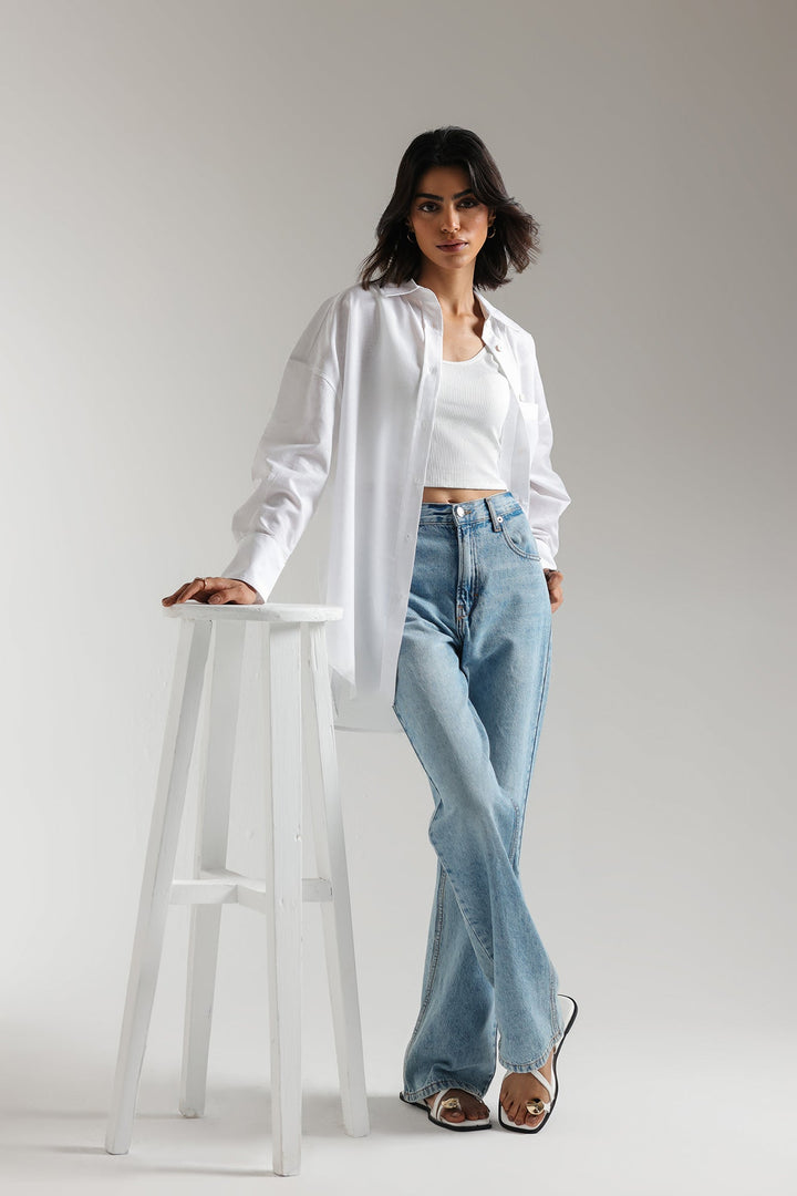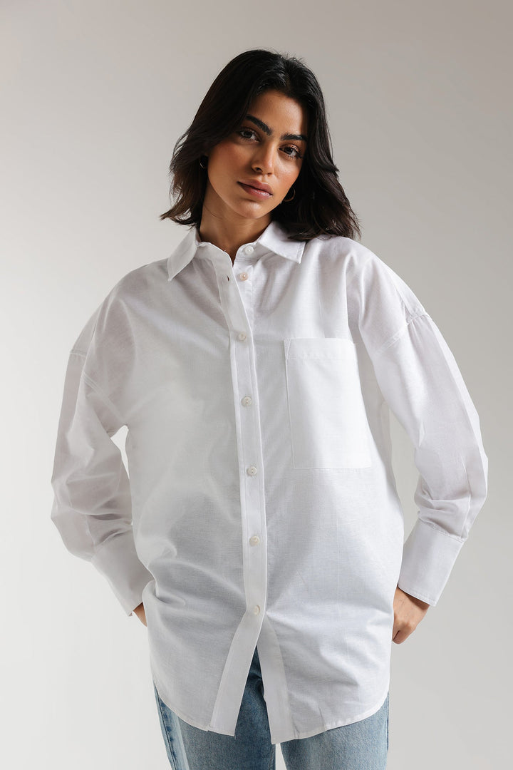 An aesthetically rich composition is portrayed on this trendy shirt rendered in a classy white color. Crafted in a chic button down silhouette with pocket at front and illustrating contemporary design with round hem. This contemporary shirt is a perfect option to style at fun occasions this season.