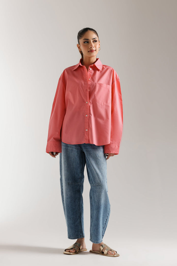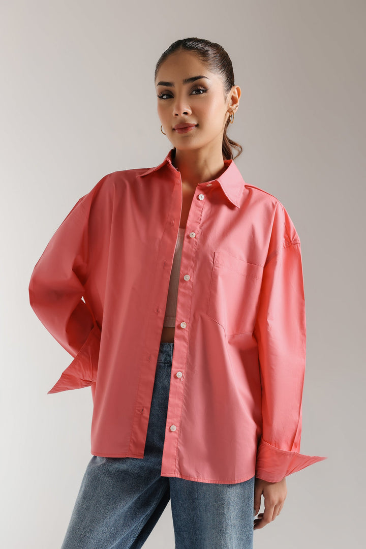 An aesthetically rich composition is portrayed on this trendy shirt rendered in an attractive pastel pink color. Crafted in a chic button down silhouette with pocket at front and illustrating contemporary design with round hem. This contemporary shirt is a perfect option to style at fun occasions this season.