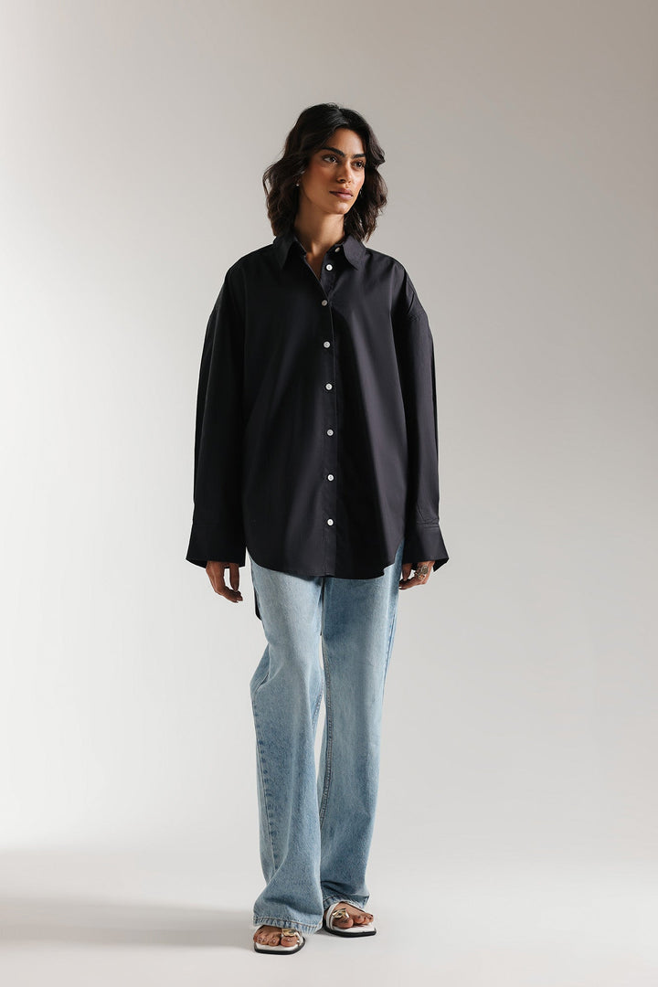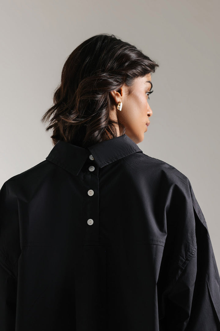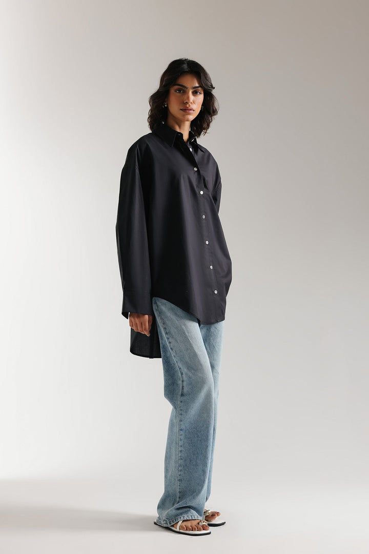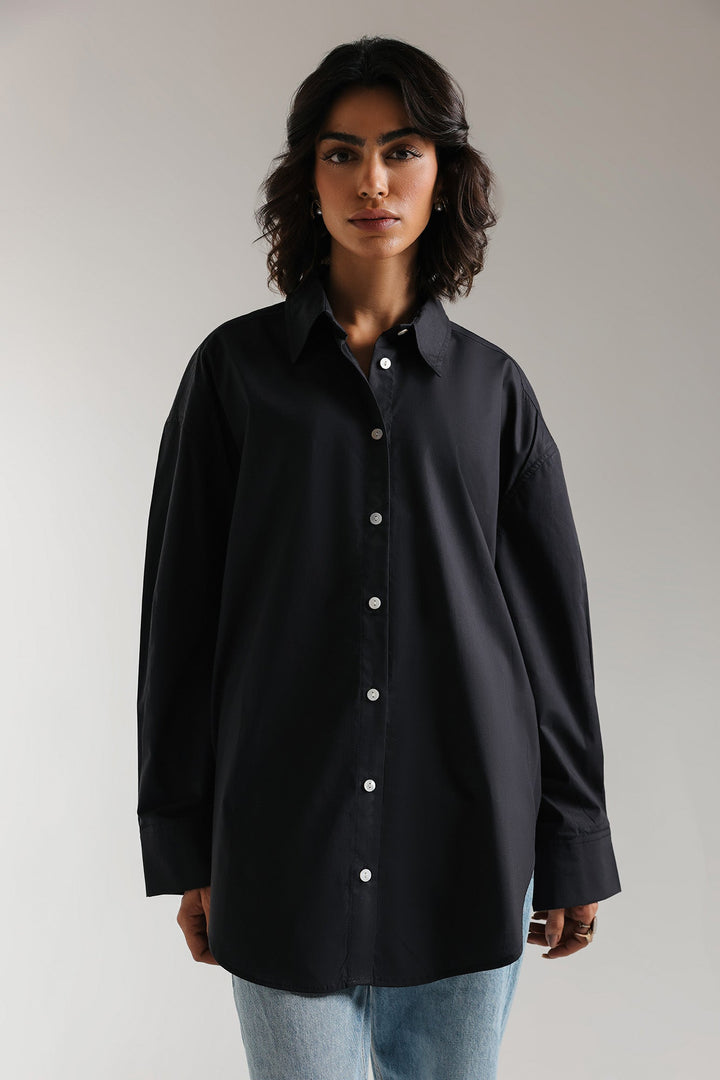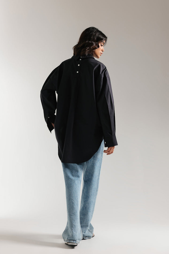 An aesthetically rich composition is portrayed on this trendy shirt rendered in a classy black color. Crafted in a chic button down silhouette with a placket at back yoke and illustrating contemporary design with round hem. This statement shirt is a perfect option to style at fun occasions this season.