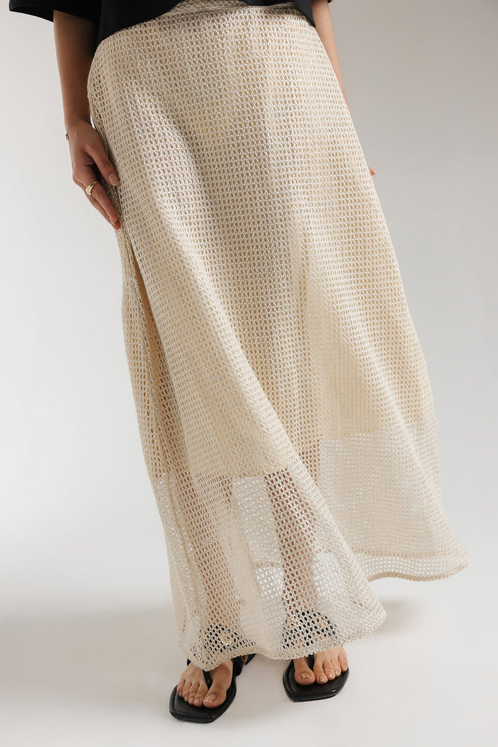 Make a style statement without the effort in this elegant off white dress. With its perfectly crafted silhouette with a fitted silhouette, this graceful crochet fabric skirt comes with an attached lining and illustrates a sleek look perfect for fun occasions Crafted to perfection and embracing a flowy design, you can't go wrong with this charming skirt.