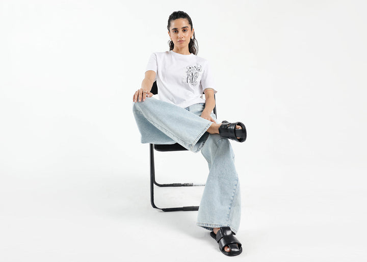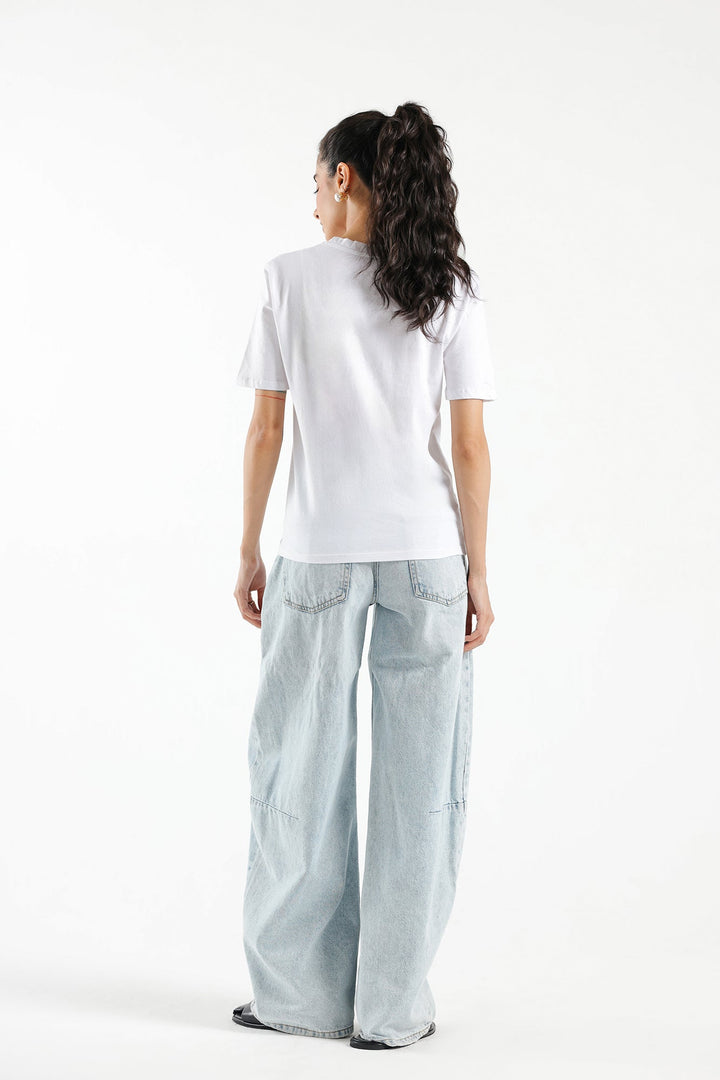This stylish embellished t-shirt is the perfect combination of comfort and modern fashion. Crafted in jersey fabric, this t-shirt features half sleeves, a round neck, and a classic white color. The real showstopper is enriched with intricate embroidery illustrating floral designs at front pocket that elevate its look.
