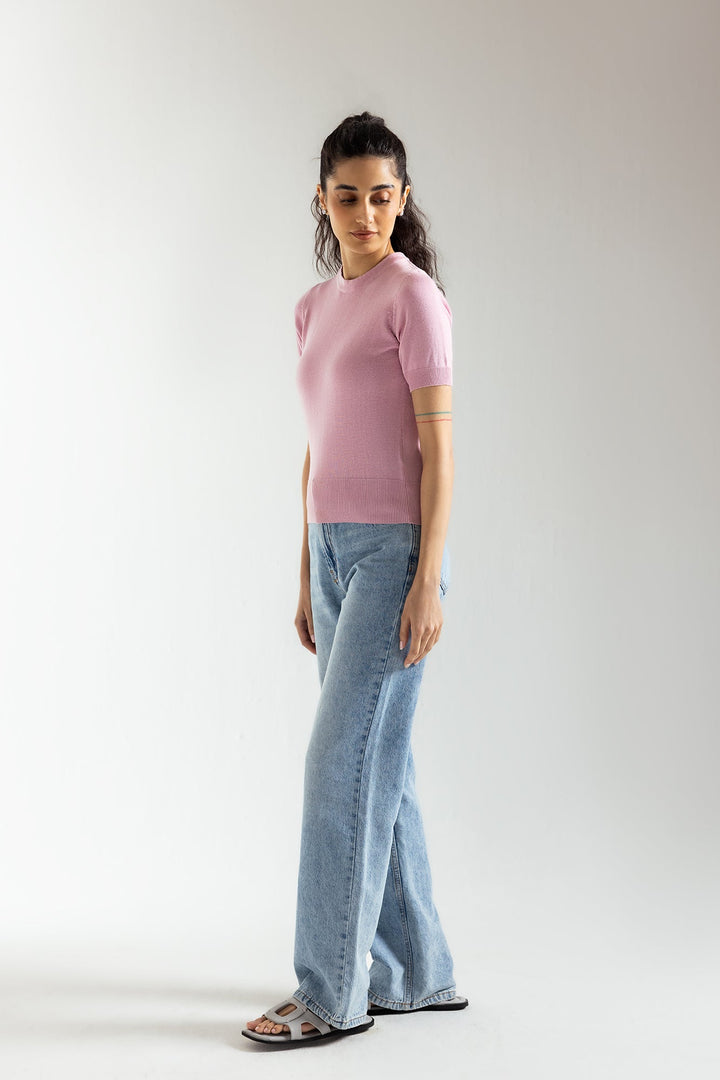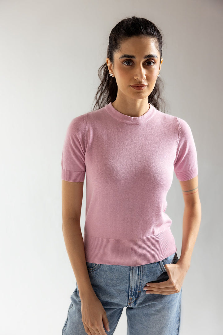 Discover a sophisticated t-shirt that is essential for any wardrobe this season. Designed with a modern mock neck silhouette, this top features a captivating solid design with ribbed sleeves and bottom hem. It's the ideal choice for any occasion and will elevate your style with its elegant and fashionable appearance.